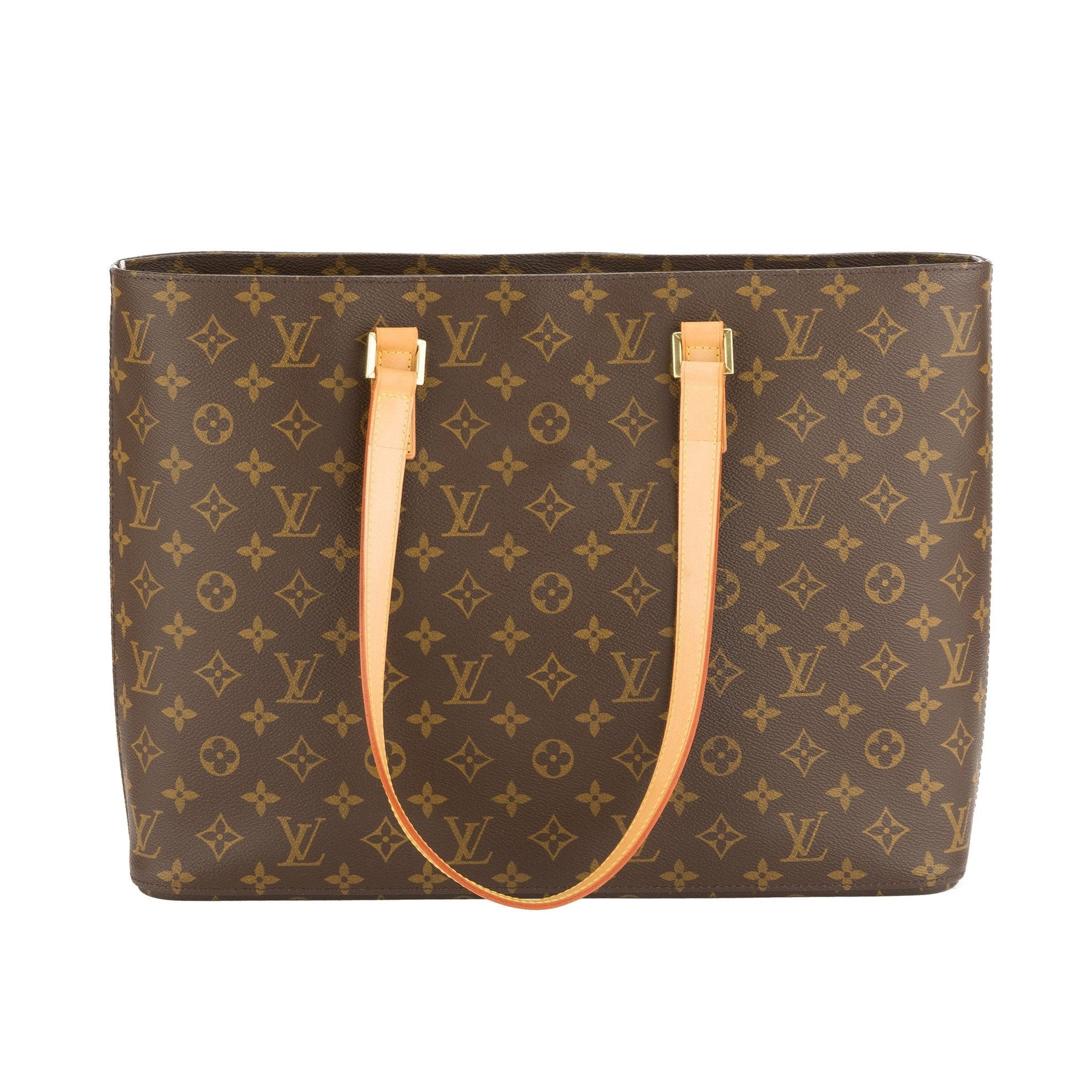 This authentic Louis Vuitton Monogram Luco Tote is an ideal everyday bag! It features a multiple interior pockets , one with a zipper closure, and it also has a zip-top closure for the entire interior. The exterior features the classic LV monogram pattern and the long vachetta handles make it the ideal tote for shopping, work and more!