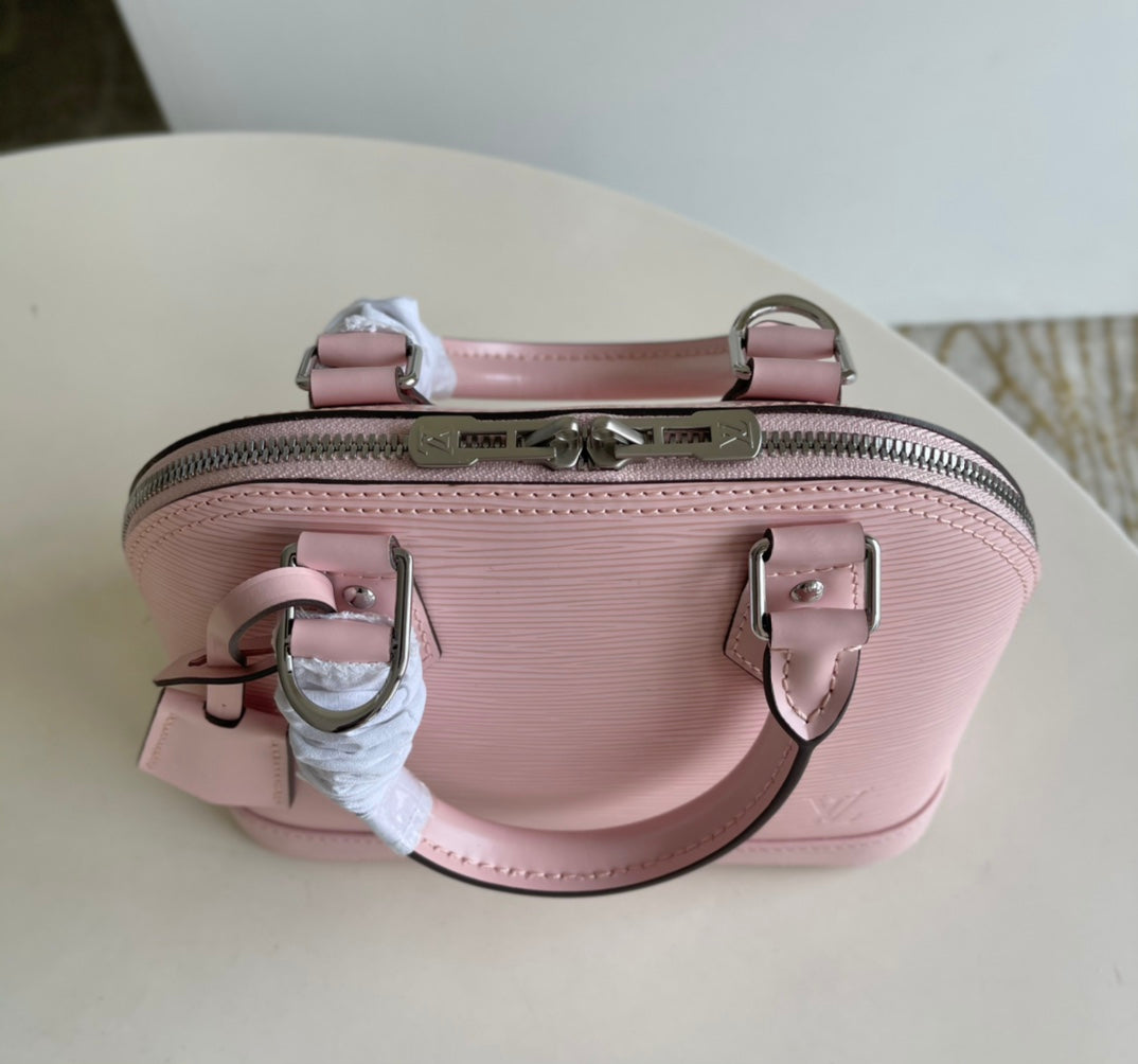 The Alma BB handbag traces its pedigree to the Art Deco original, introduced in 1934. This model is crafted from emblematic Epi leather, a deep-dyed, textured cowhide exclusive to the House. Its unmistakable shape and signature details – padlock, hand-stitched Toron handles, key bell – make this compact bag a timeless classic. Fitted with a removable strap for cross-body wear.