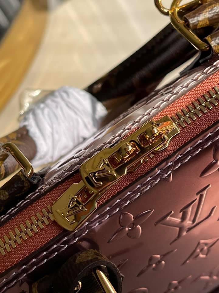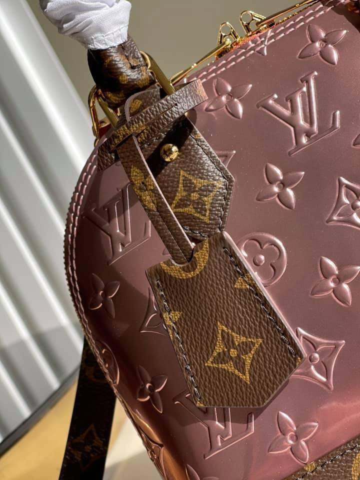 Made from stunning metallic Monogram Vernis leather, the adorable Alma BB handbag literally shimmers with style. The Monogram pattern debossed into the leather is playfully echoed by that of the Monogram canvas trim. Femininity and refinement fuse in one of the House's most iconic shapes.