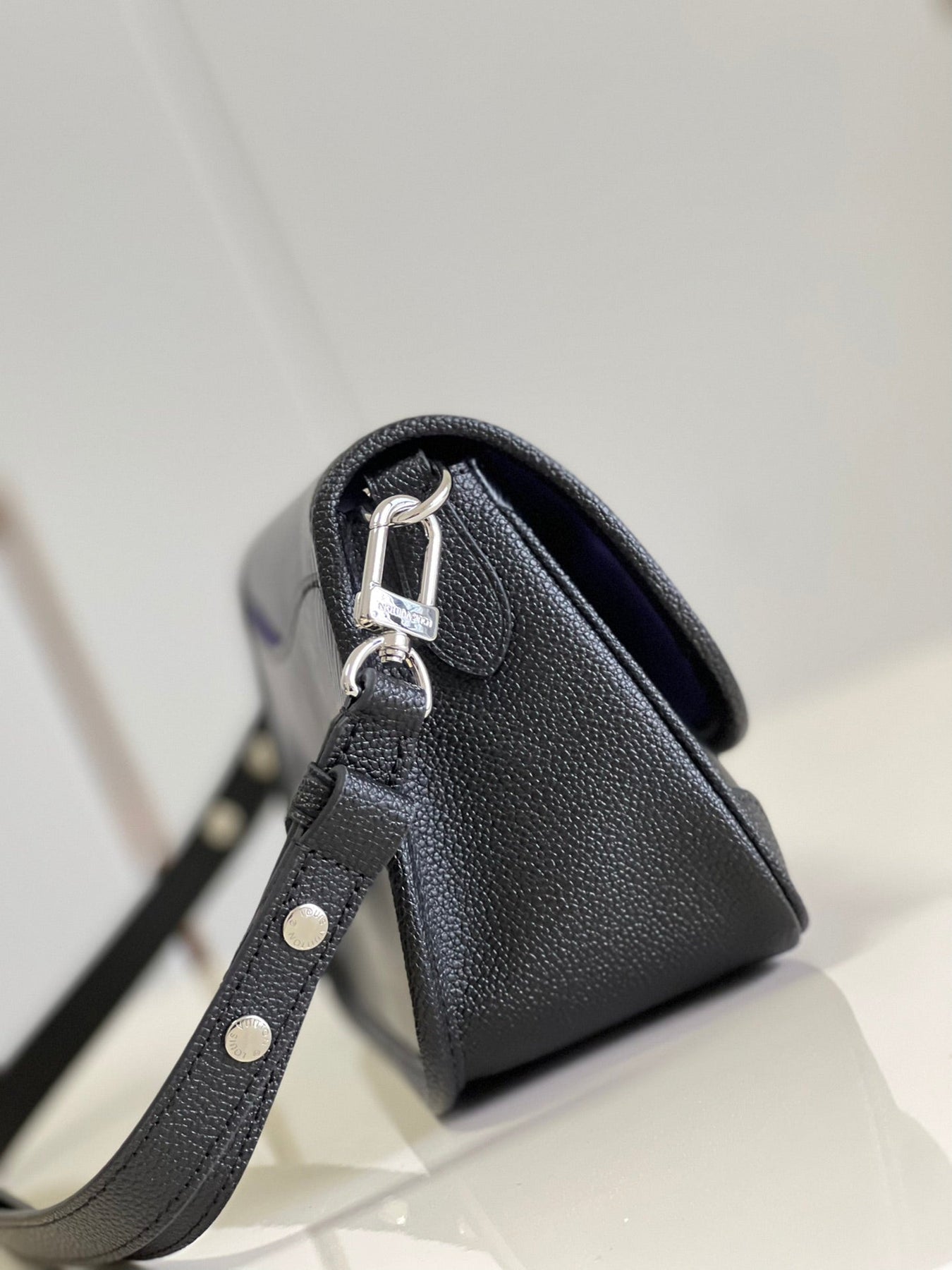 • Front flap with decorative LV resin ornament, magnetic closure