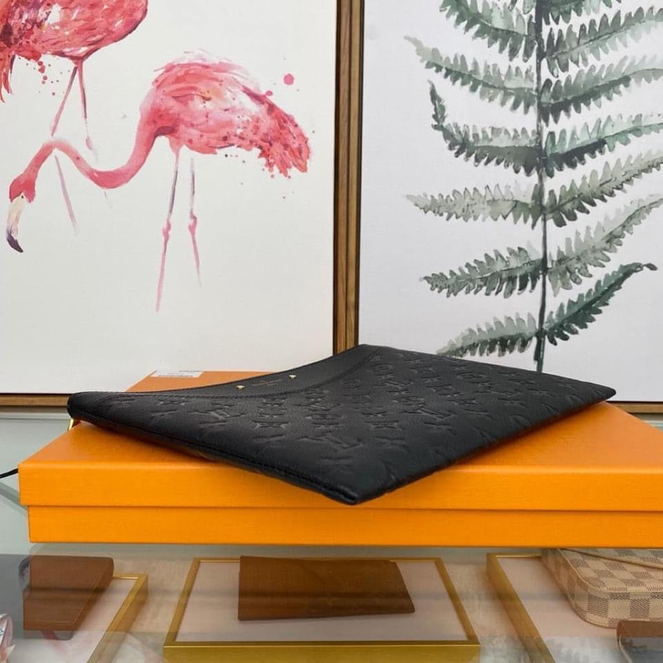 Crafted from supple Monogram Empreinte leather, which is embossed with Louis Vuitton's iconic Monogram pattern, the Daily Pouch is a modern, versatile accessory. It can be carried as a clutch for day or evening, or slipped inside a larger bag, and can also hold business essentials such as documents or a tablet.