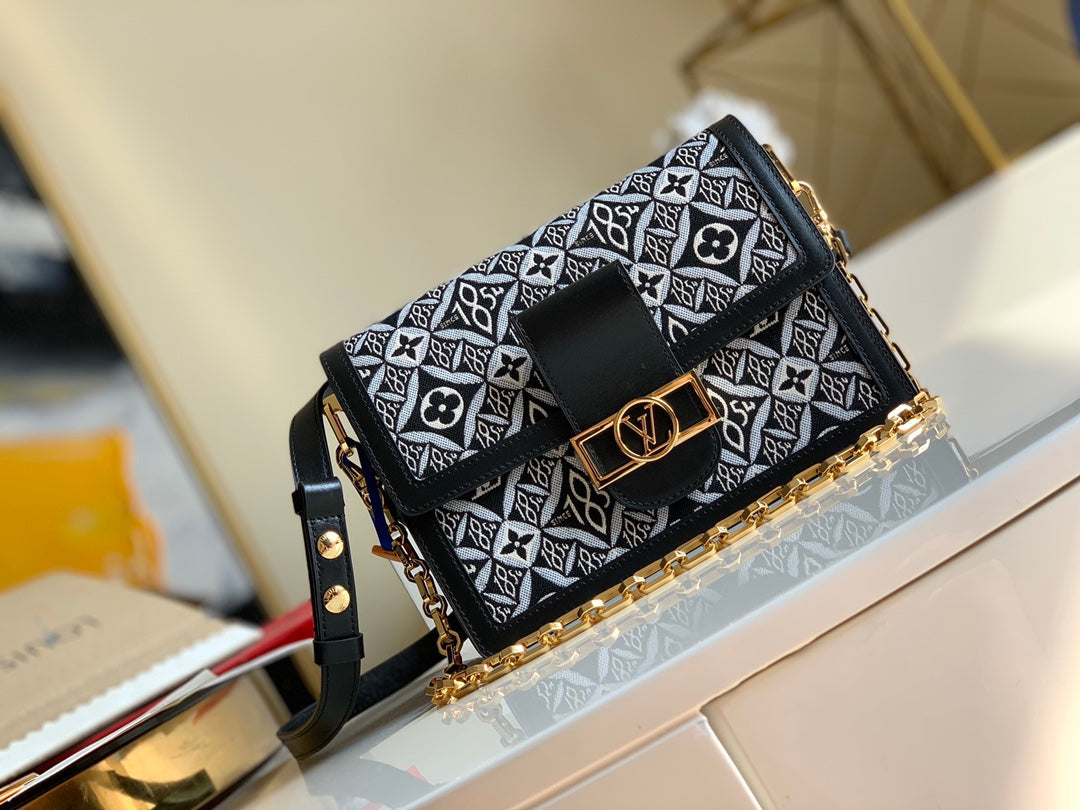 The Dauphine MM handbag is made from the House’s new Jacquard Since 1854 textile, with a woven pattern of Monogram Flowers, LV Initials, and 1854s, a reference to the year of Louis Vuitton’s founding. Its elegant design, numerous inside compartments, and removable strap make it a great everyday bag.