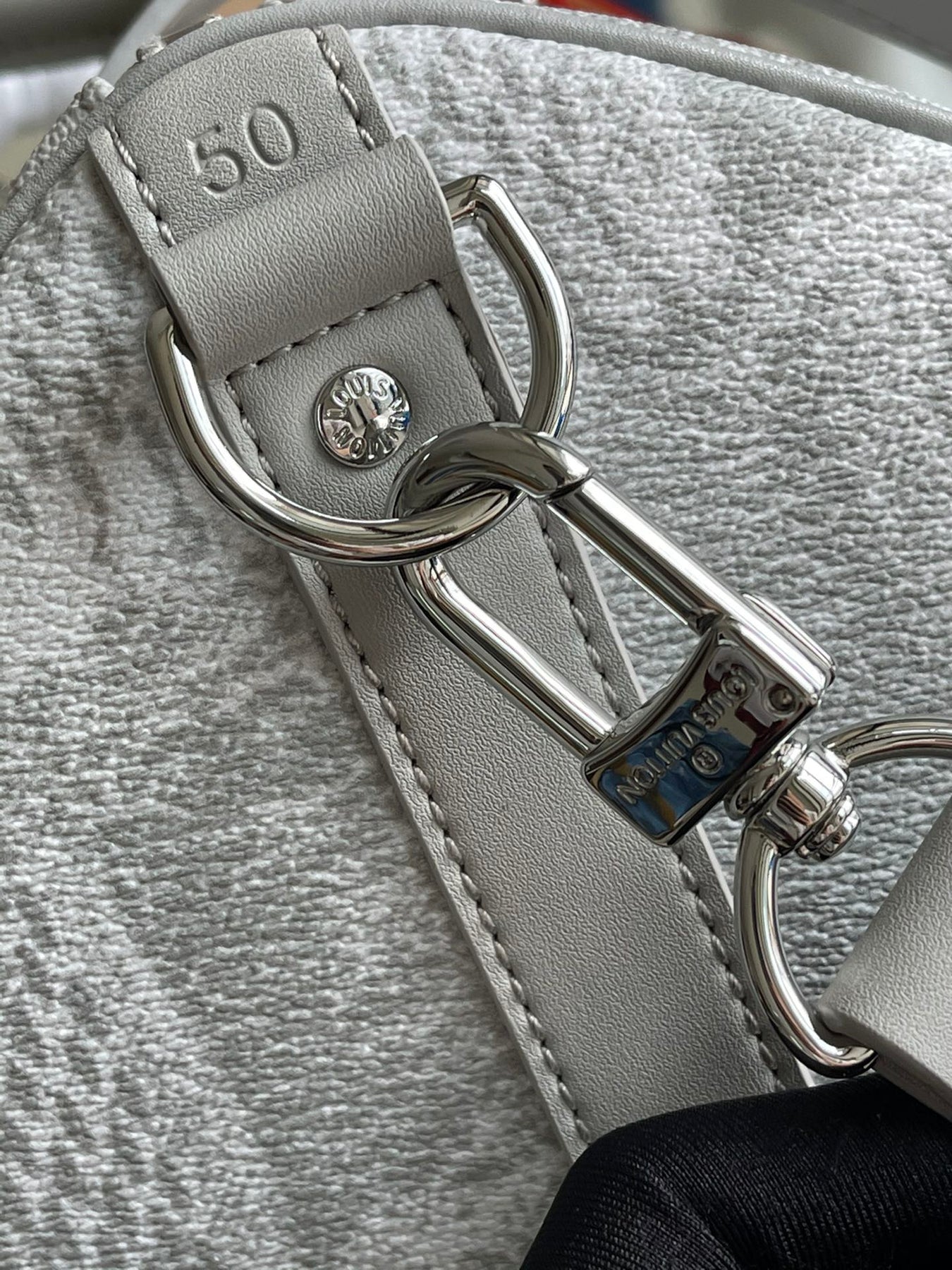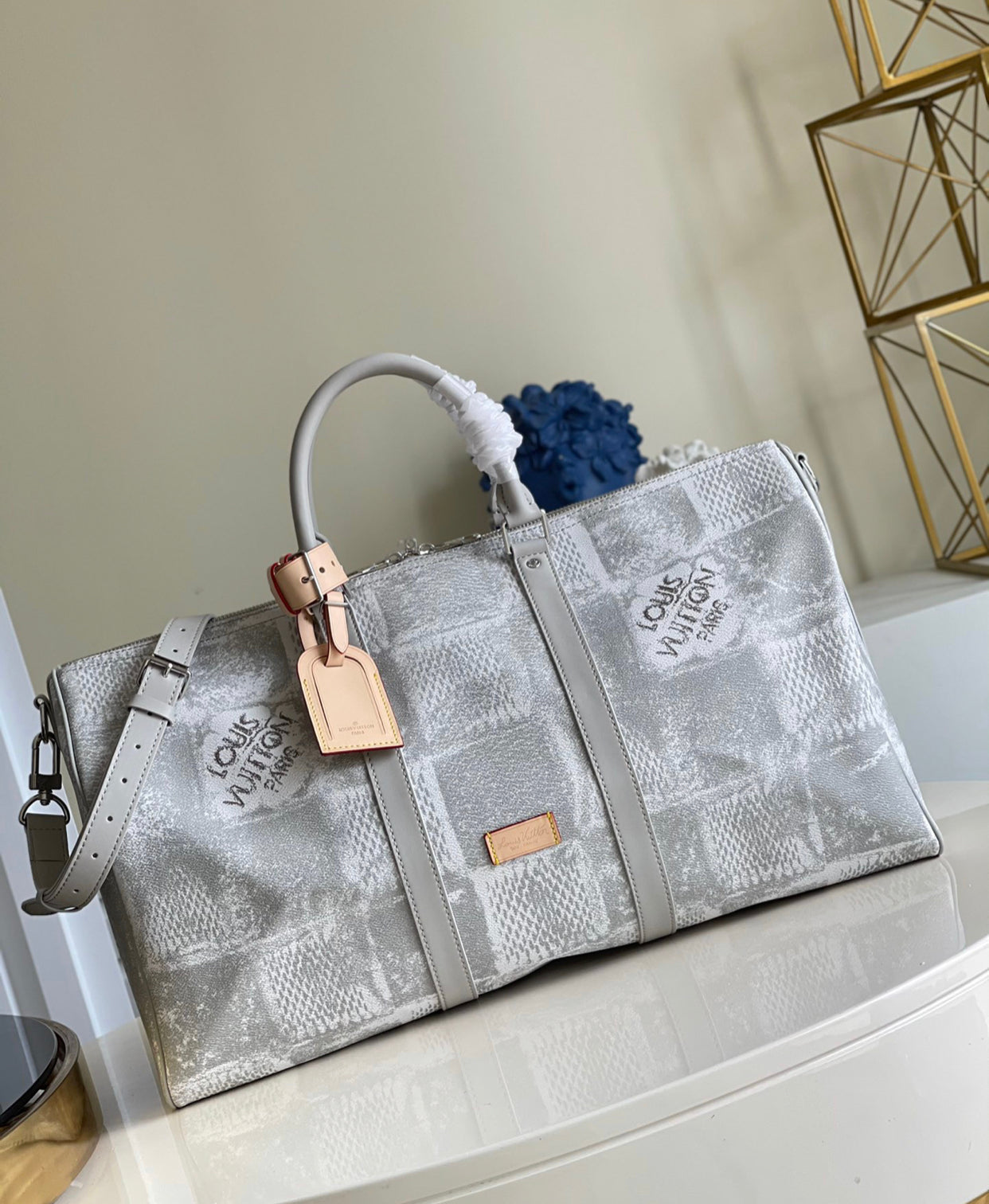 The Keepall Bandoulière now comes in Damier Salt canvas in distinctive Stone gray. The House’s legendary coated canvas is specially treated, giving its outsized checks a rough-edged look, like the denim in the Louis Vuitton ready-to-wear collections. And as always, the Keepall lives up to its name with its large capacity, perfect for weekends and short trips.