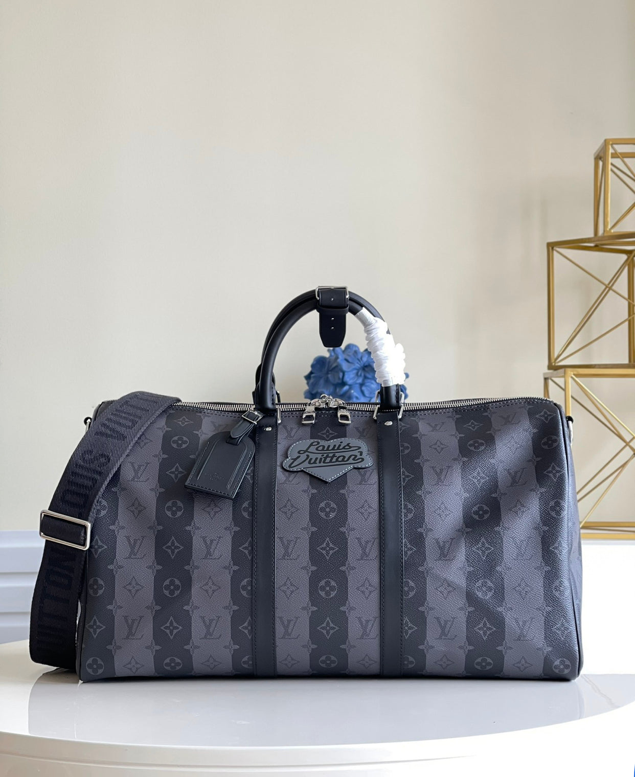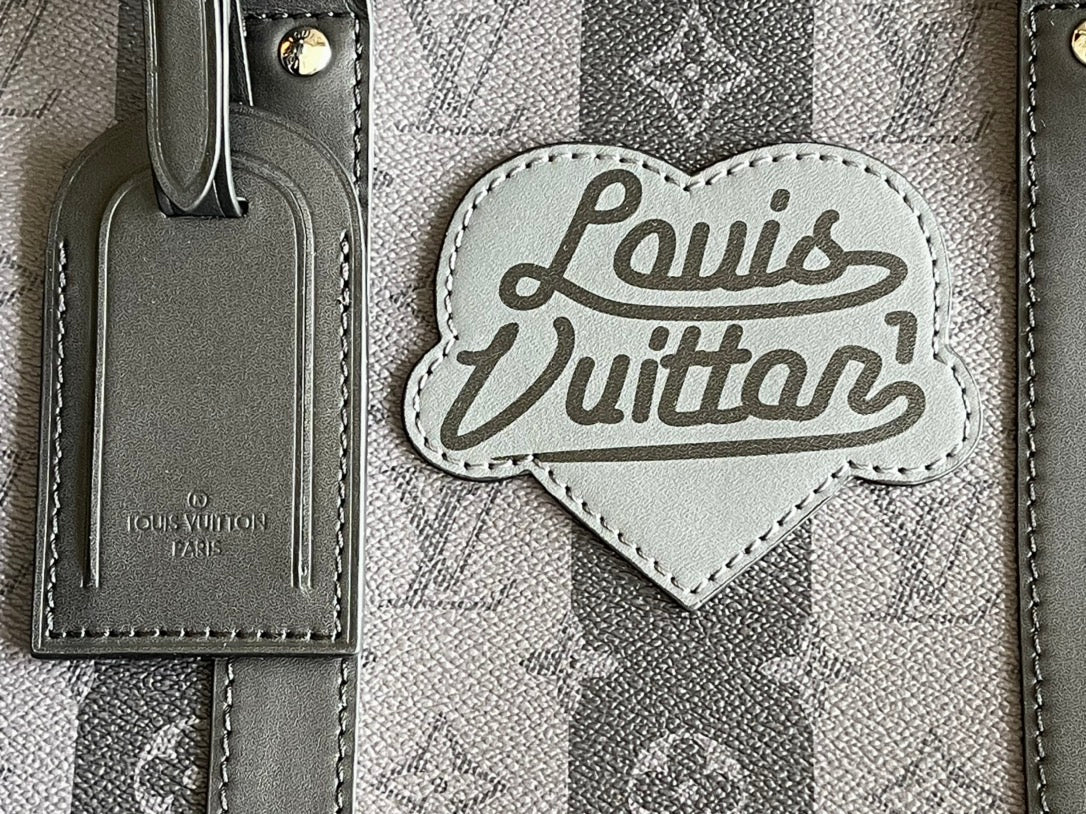 For the NIGO® x Louis Vuitton capsule collection, Virgil Abloh and Japanese designer Nigo collaborated on this Keepall Bandoulière 55 travel bag in masculine Monogram Stripes Eclipse canvas. Reworking the Monogram pattern on stripes, Nigo creates a bag that is both classic and totally modern. It’s signed with a “Louis Vuitton made” patch.