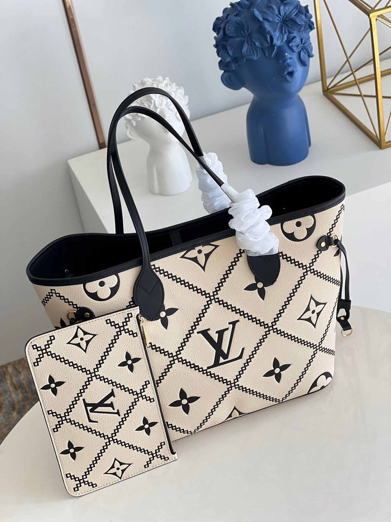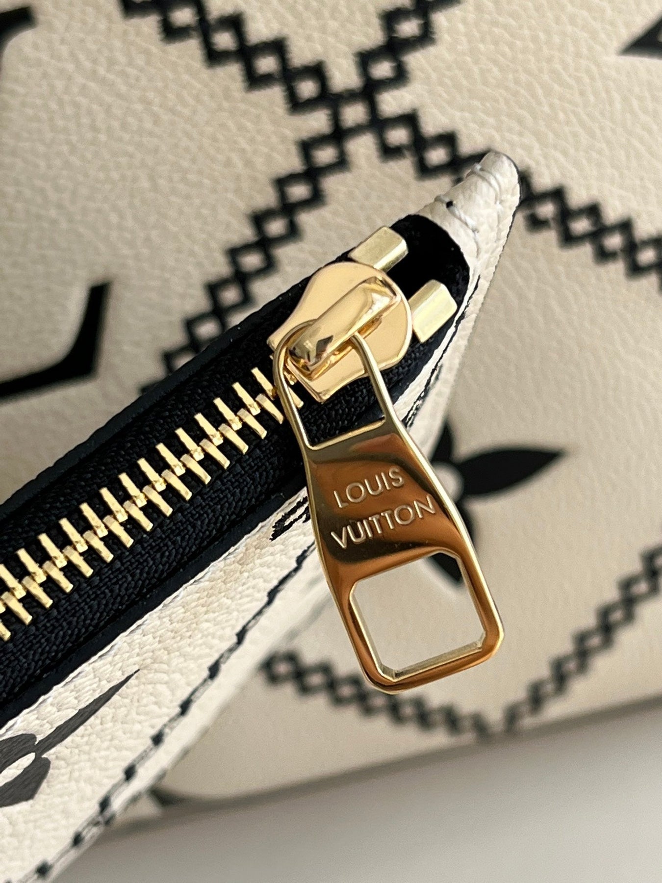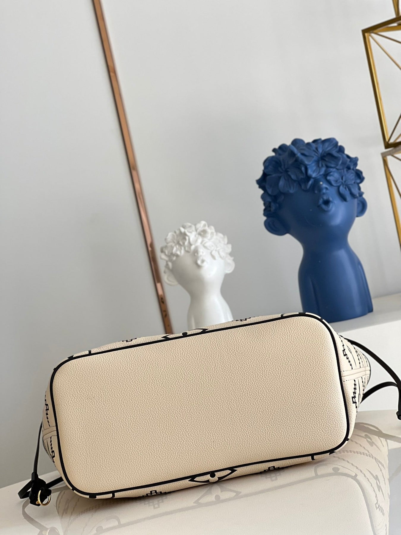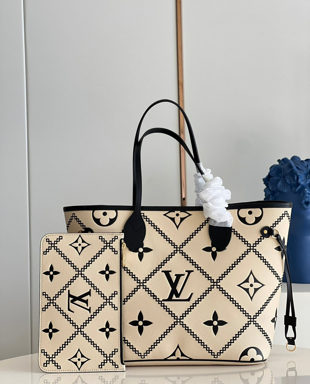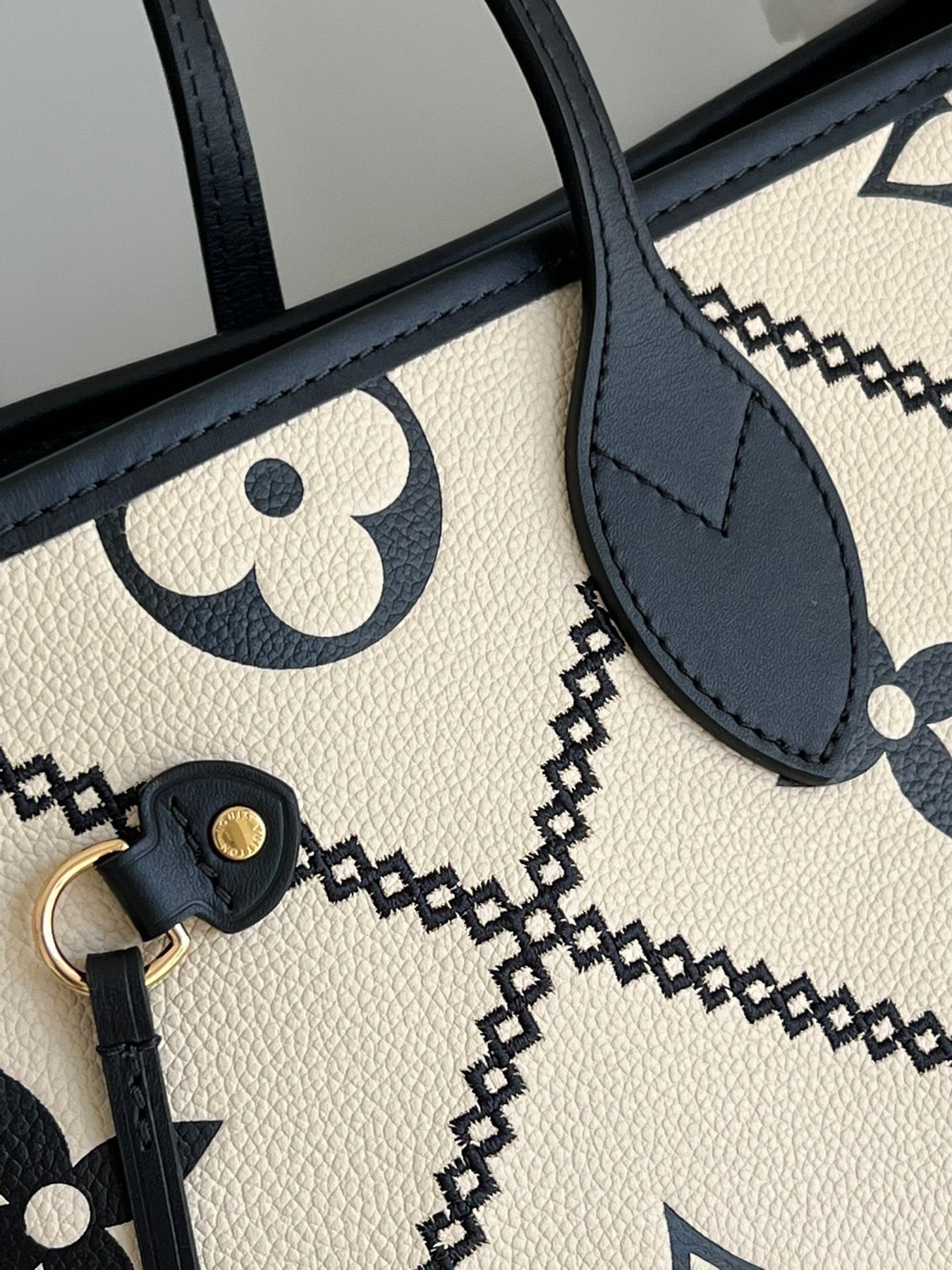 For Spring 2022 the House introduces a refined edition of the Neverfull tote in Monogram Empreinte leather. This statement piece is embellished with contrast stitching that recalls the heritage Malletage pattern, used on the linings of original Louis Vuitton trunks. The motif is printed, embossed, then impeccably embroidered on the leather, creating an on-trend, crafted effect.