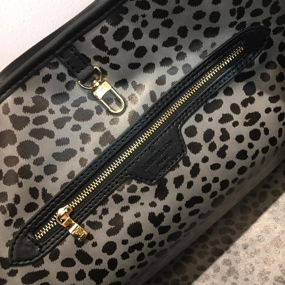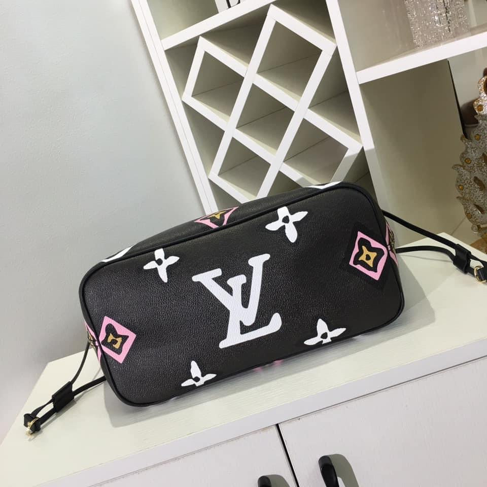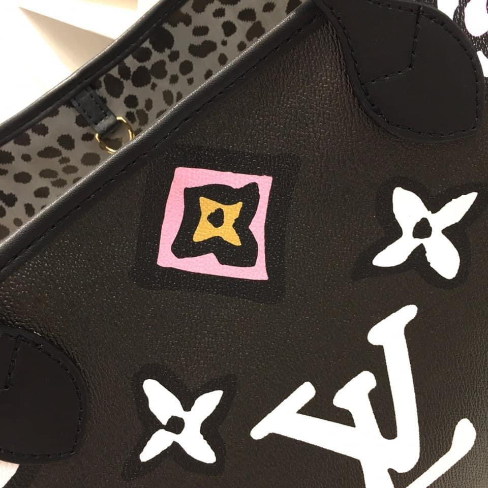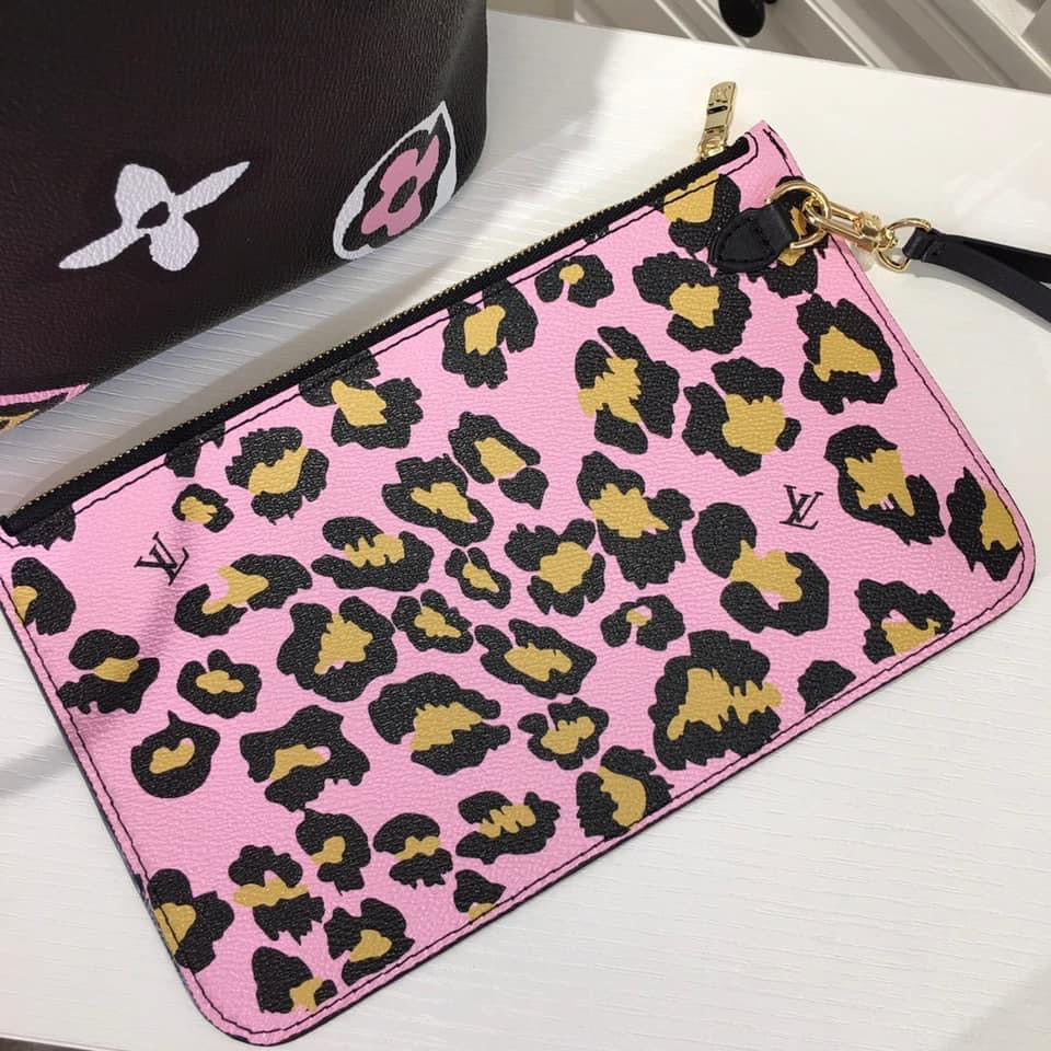 The Neverfull MM tote is arrayed this season in an exclusive Monogram print inspired by an archival design. Part of the Wild at Heart capsule, it has a boldly graphic, hand-painted look. This roomy carryall can be slipped over the shoulder or elbow and comes with a separate zipped pouch that can serve as a clutch or extra pocket.