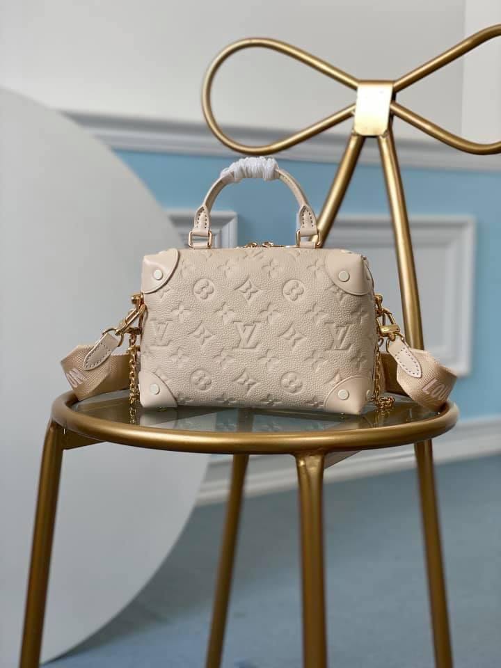 Fashioned from embossed Monogram Empreinte leather, the Petite Malle Souple handbag is a soft-sided version of the now classic Petite Malle. With its LV luggage tag and riveted leather corners, it is tribute to the House’s trunk-making heritage. It has a wide removable strap, in addition to its top handle, as well as a practical inside zipped pocket.