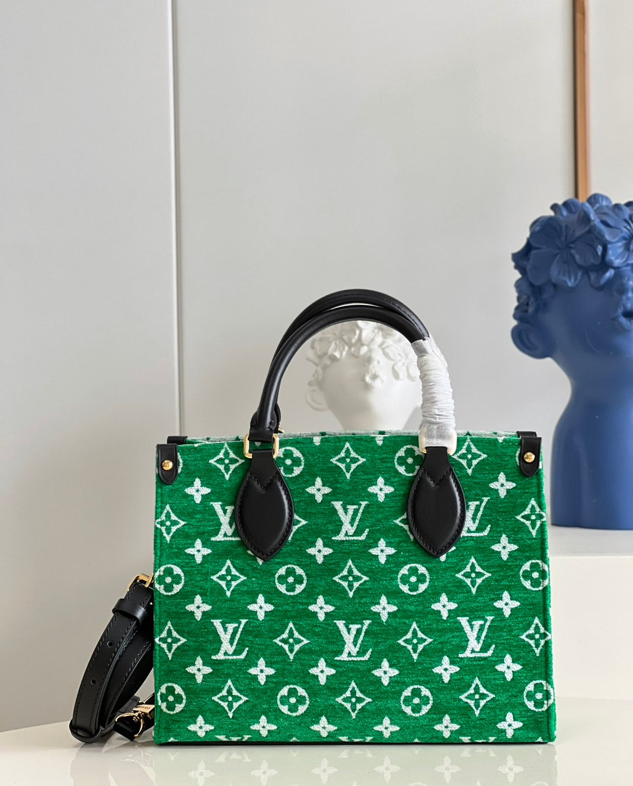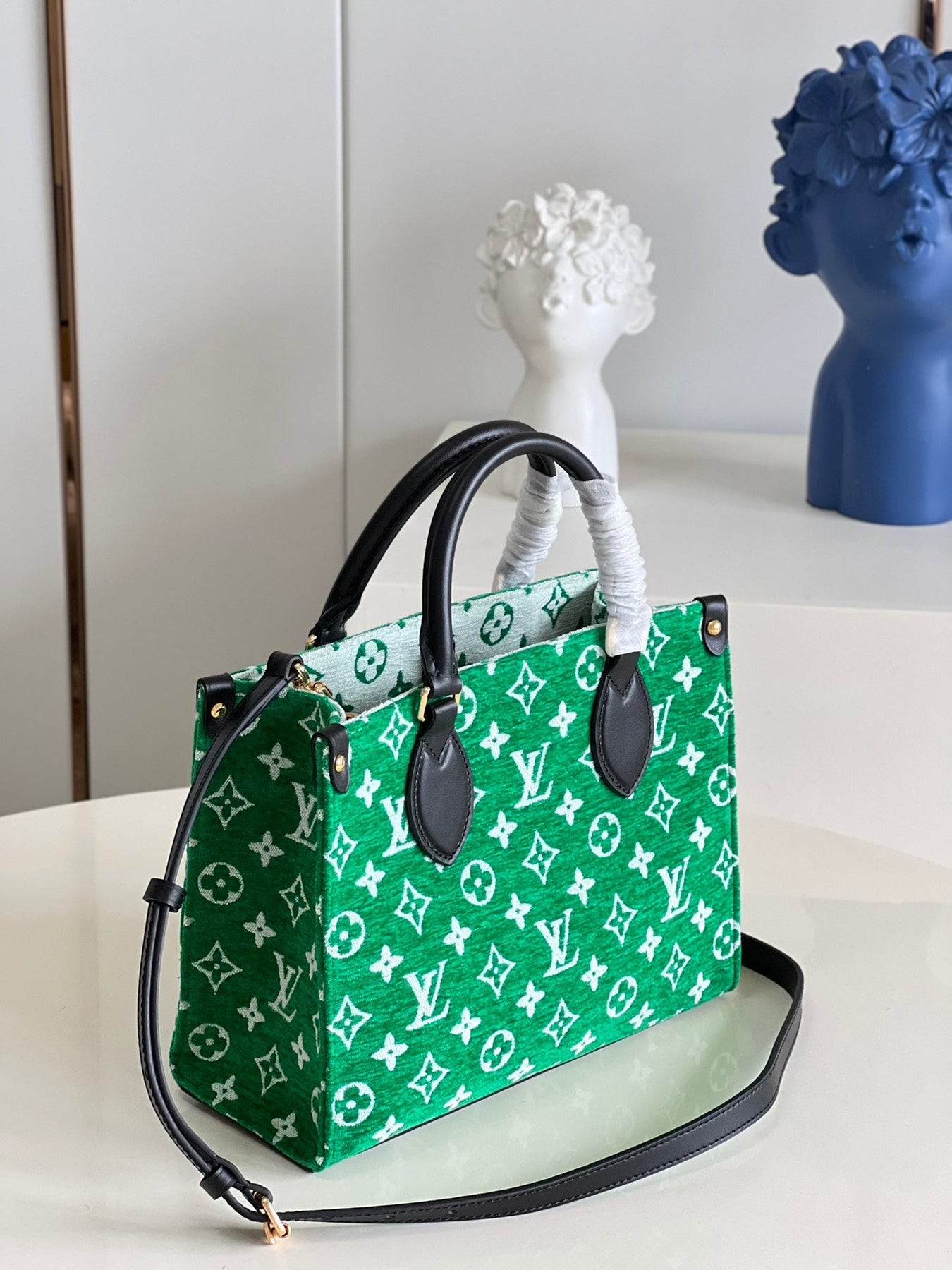 This sporty edition of the OnTheGo PM tote comes from the LV Match capsule, a tribute to the world of Grand Slam tennis. Crafted from a velvety Monogram jacquard with contrasting leather trim, it is lined with the same Monogram pattern in a reverse colorway for a playful effect. A fun, fashionable piece to carry courtside or in the city.