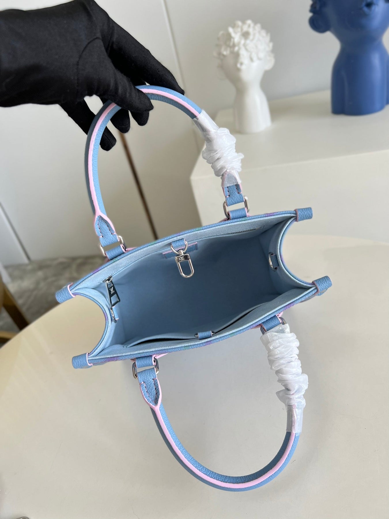 This ultra-desirable OnTheGo PM tote bag in Monogram Empreinte leather has an almost iridescent look thanks Louis Vuitton’s unique three-step spraying technique that highlights the quality and subtle new color of the leather. With both rolled-leather top handles and long shoulder straps, this functional carryall offers multiple carry styles.