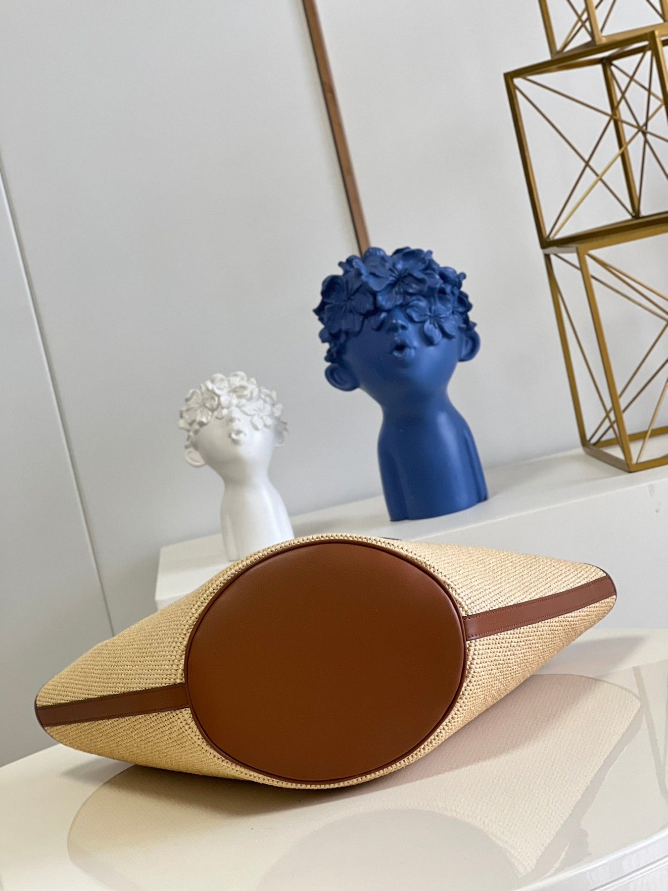 With the Saint Jacques, Louis Vuitton reinterprets that summery staple, the raffia beach bag. Smooth leather trim and detailing add elegance to this capacious model, the ideal casual-chic companion for sunny days, on city streets or by the sea. A removable raffia pouch can serve as either an extra pocket or a compact clutch
