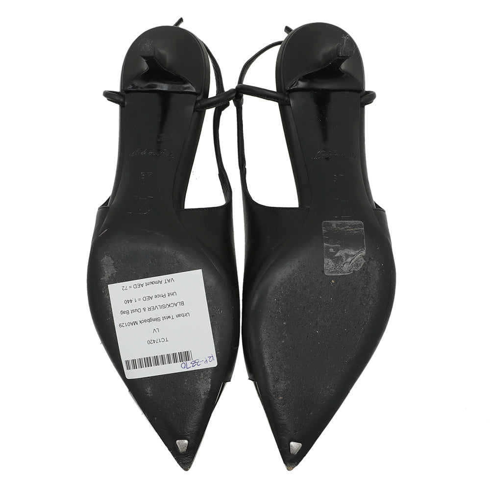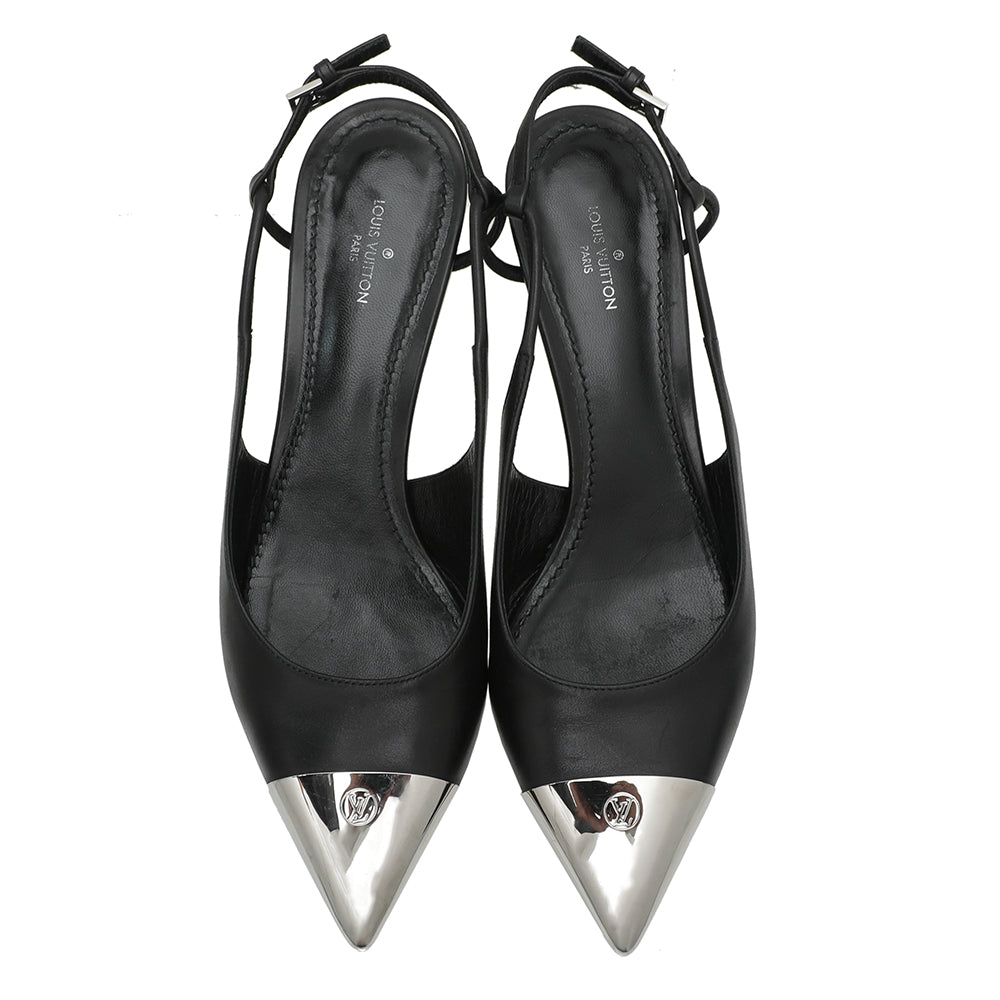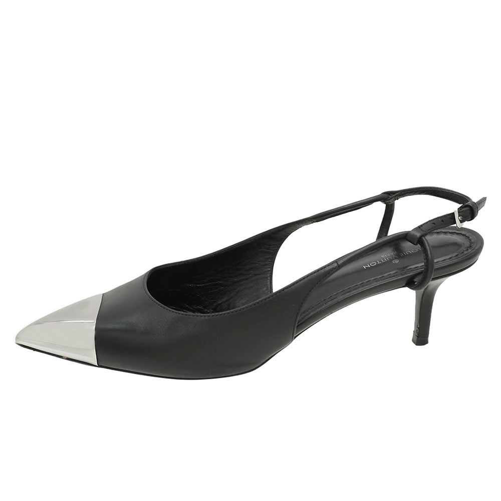 - Material: Black Leather with Silver Tone Metal Toe Cap