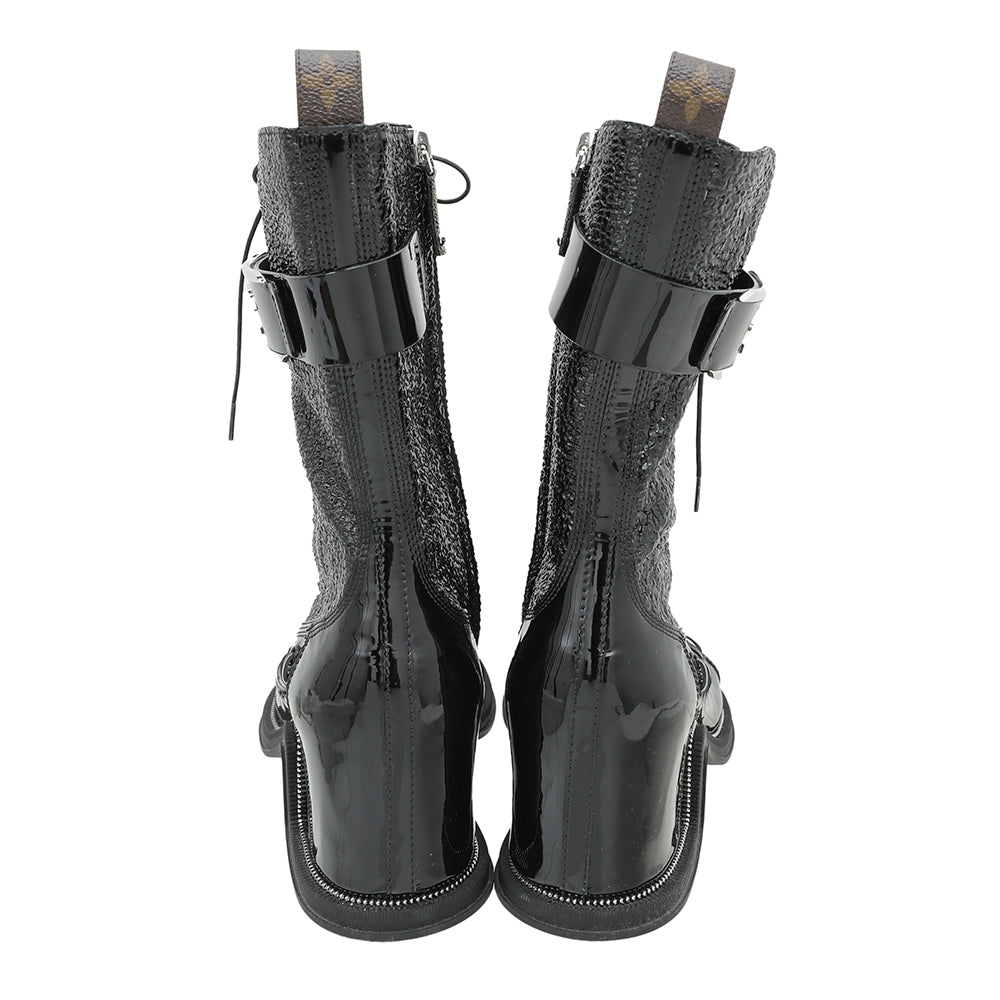 - Material: Black Grained Goat Leather and Patent Calf Leather