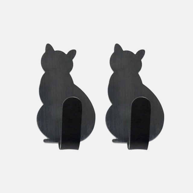 2pcs Self Adhesive Hooks Cat Pattern Storage Holder for Bathroom Kitchen Hanger Stick on Wall Hanging Door Clothes Towel Racks