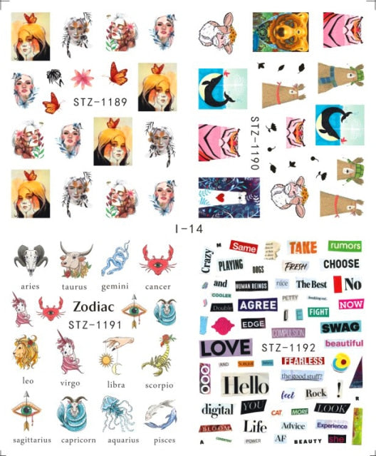Style: Cartoon Flowers Animals Love Words Letters for nails stickers