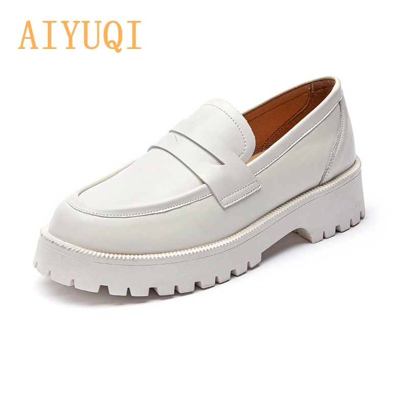 AIYUQI Spring Shoes Female British Style 2021 New Thick-soled College Style Casual Loafers Genuine Leather Fashion Shoes Girls