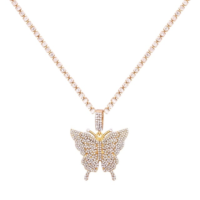 Statement Big Butterfly Pendant Necklace Rhinestone Chain for Women Bling Tennis Chain Crystal Choker Necklace Party Jewelry
