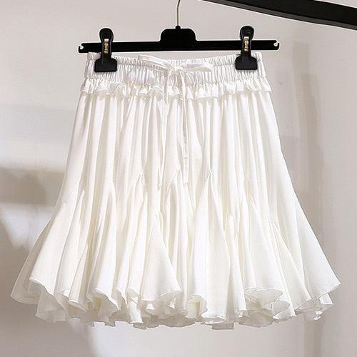 Surmiitro White Black Chiffon Summer Shorts Skirt Women 2021 Fashion Korean High Waist Tutu Pleated Mini Aesthetic Skirt Female
