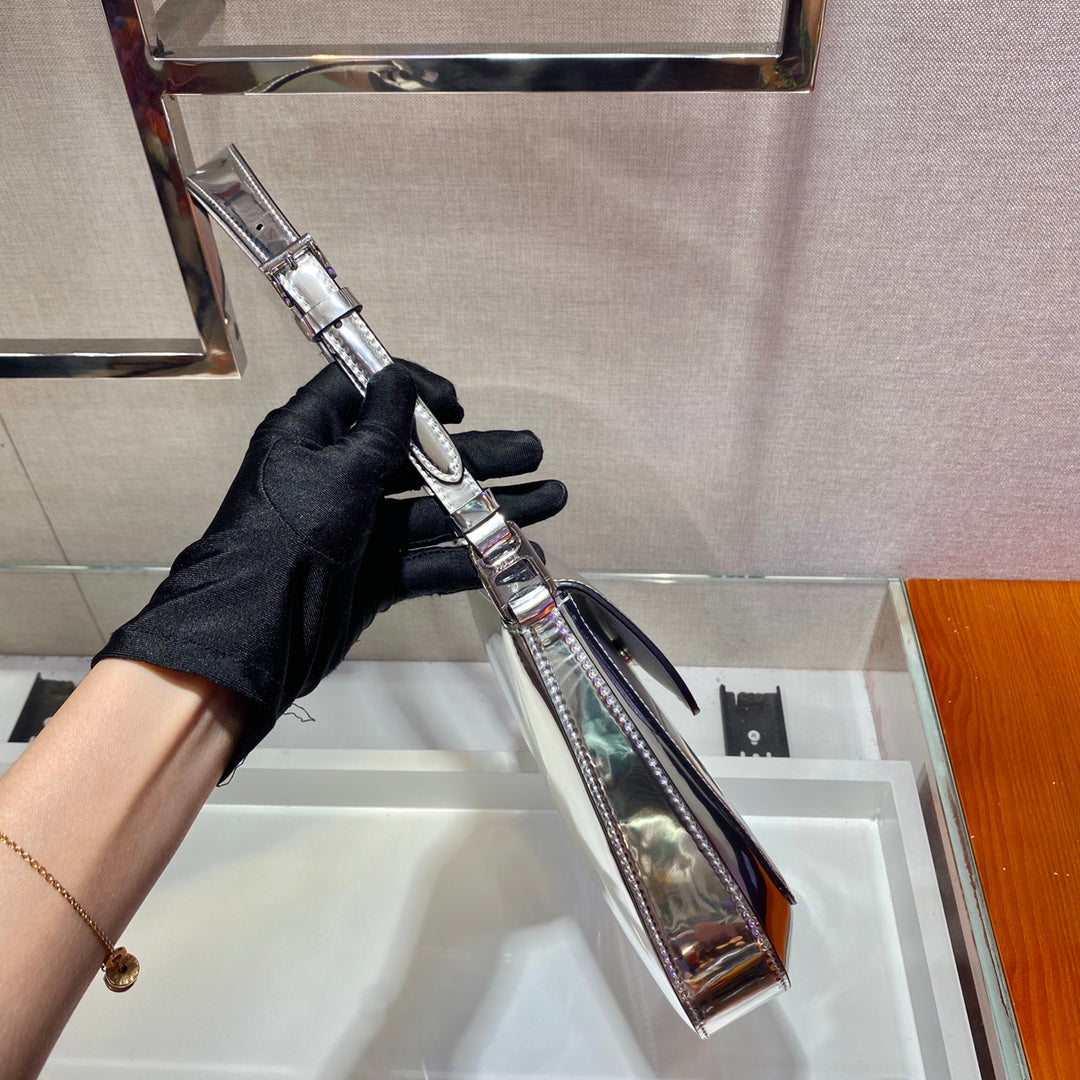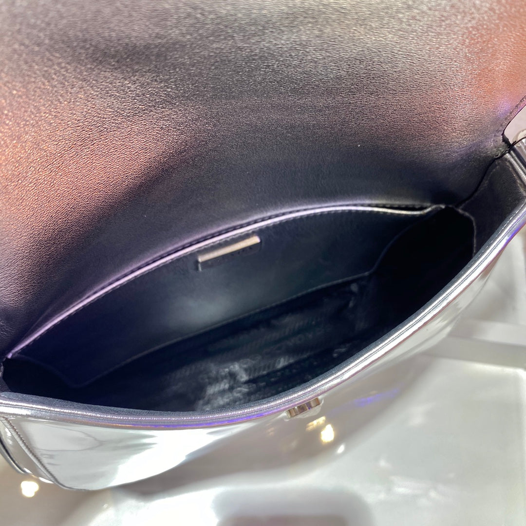 Prada Silver Cleo brushed Leather Shoulder Bag With Flap