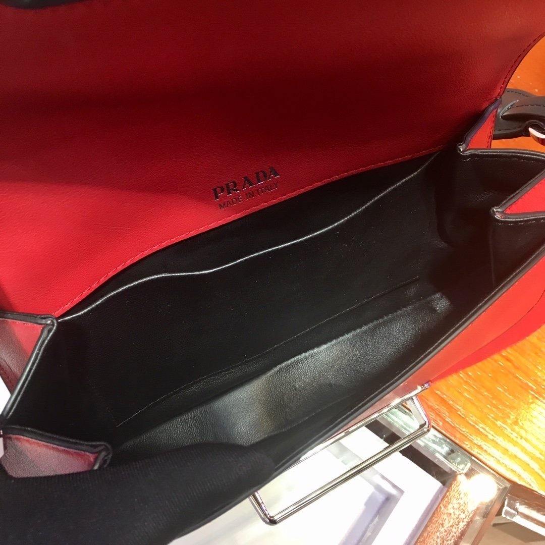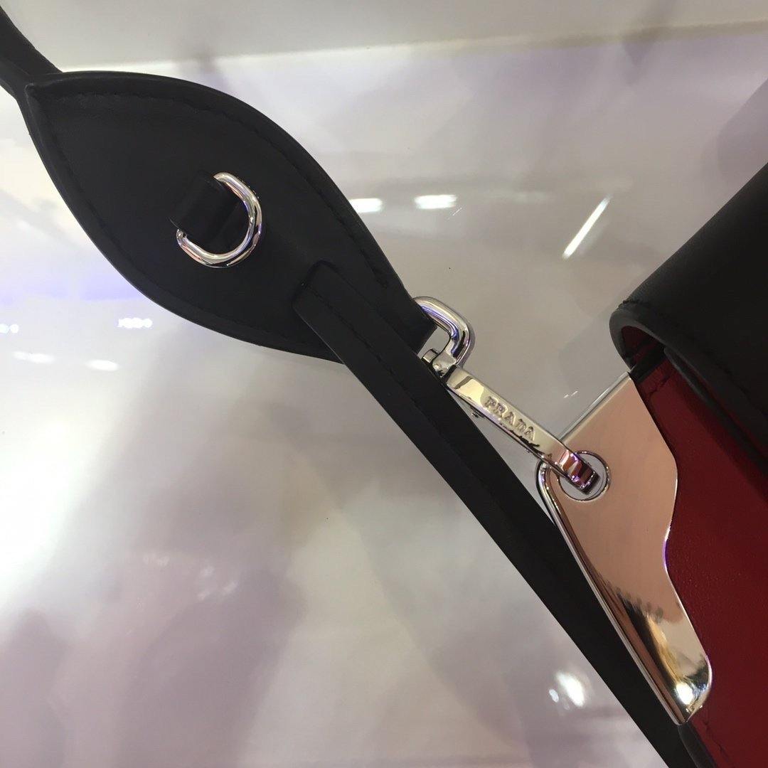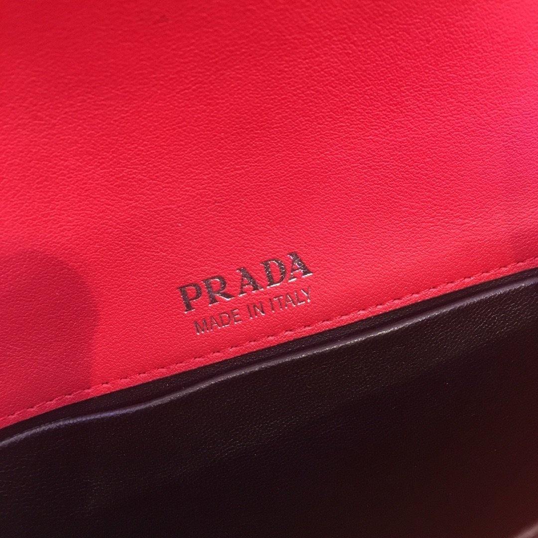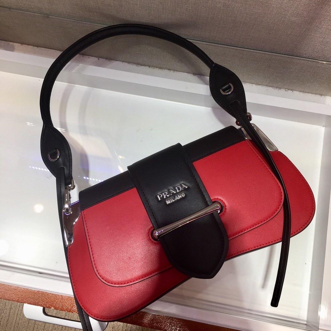 This Prada Sidonie shoulder bag is made of leather. The bag, characterized by the harmonious lines of the shoulder strap, features a large flap with metal buckle.