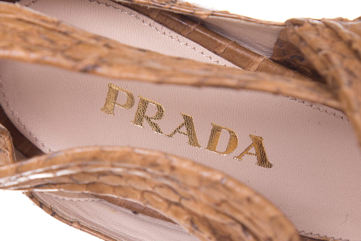 Prada Beige & Brown Python Wrap Heels. This item has never been .