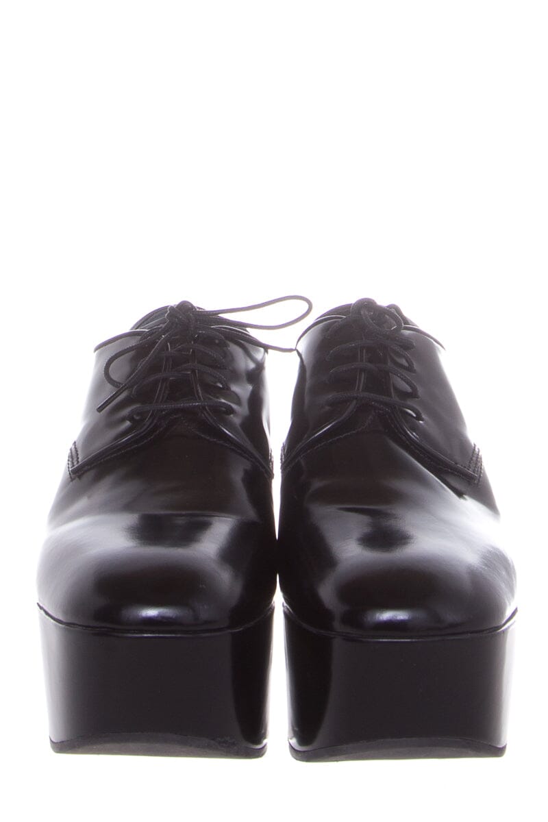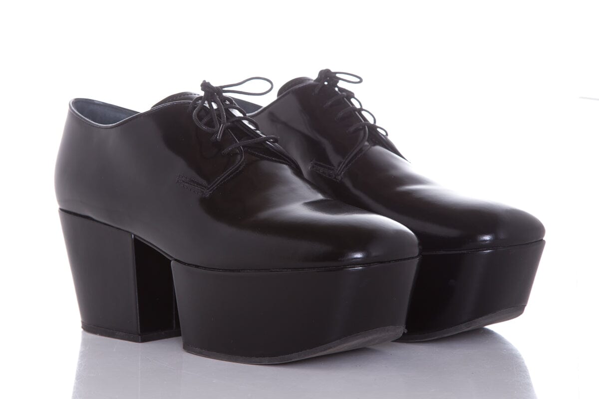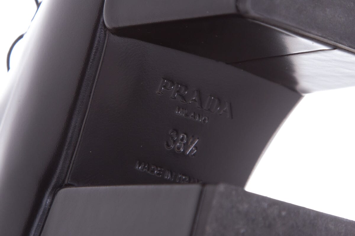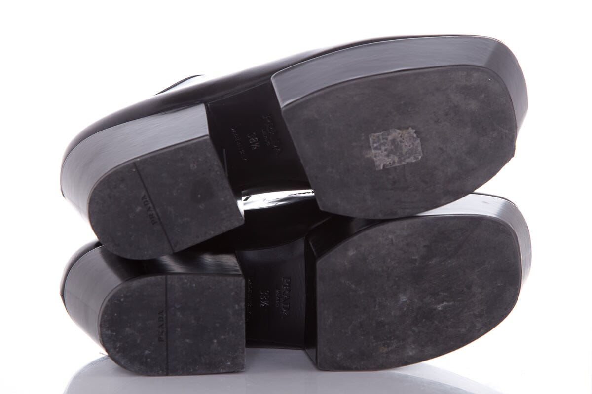 Prada Black Leather Heel Derby Loafers SZ 38.5