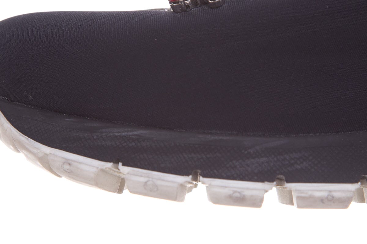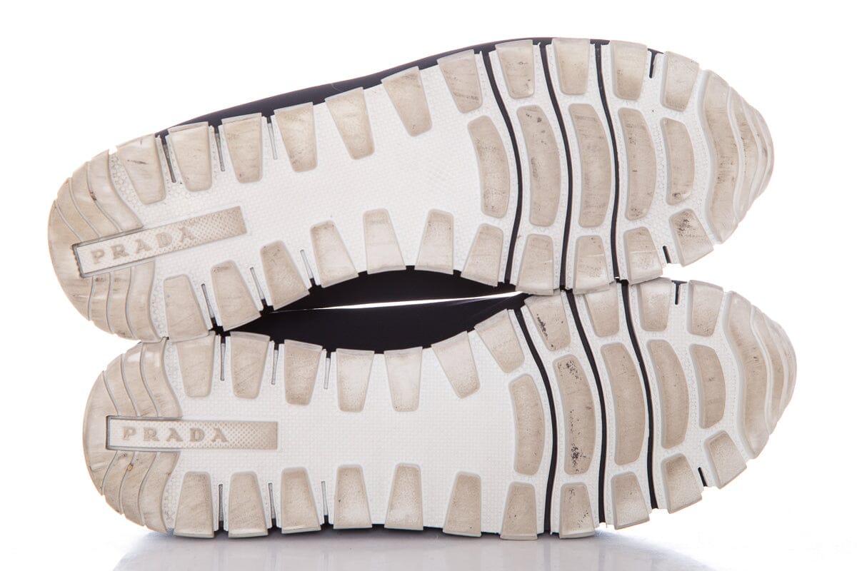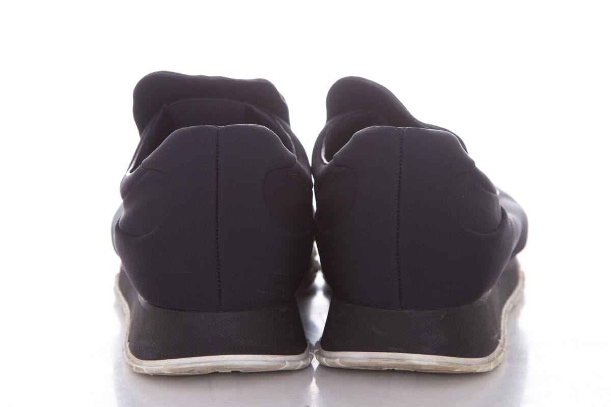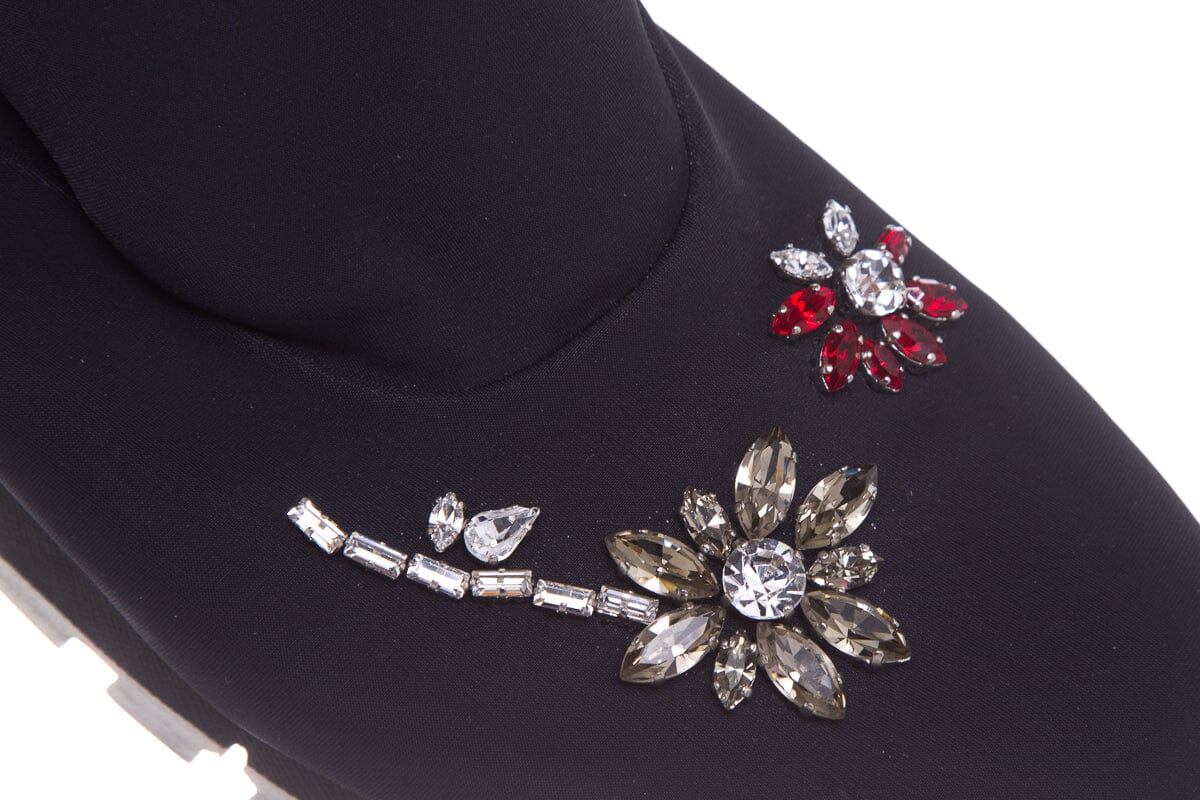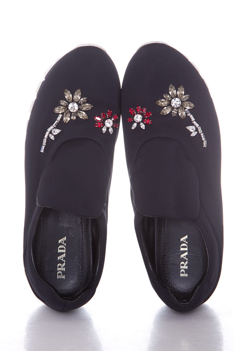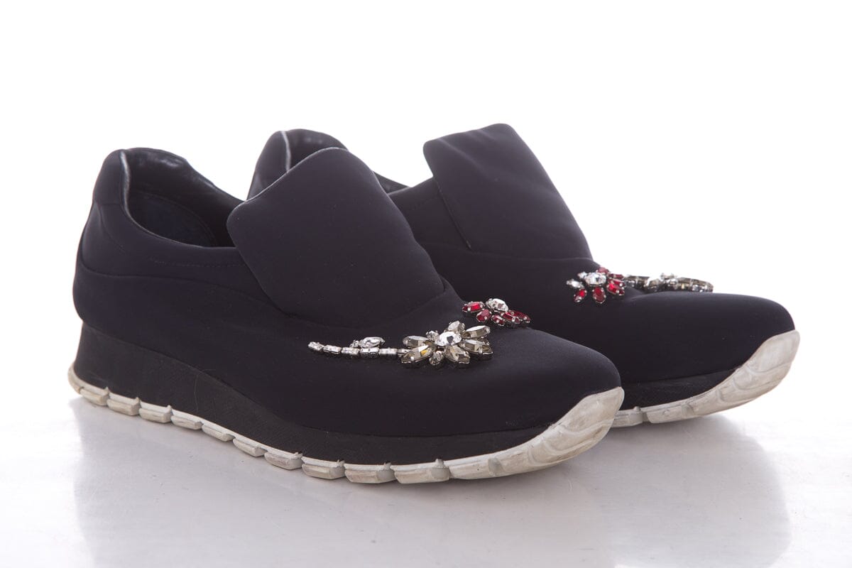 Prada Black Neoprene Jewel Detail Sneakers. This item is in good condition with some wear to soles, and outsoles.
