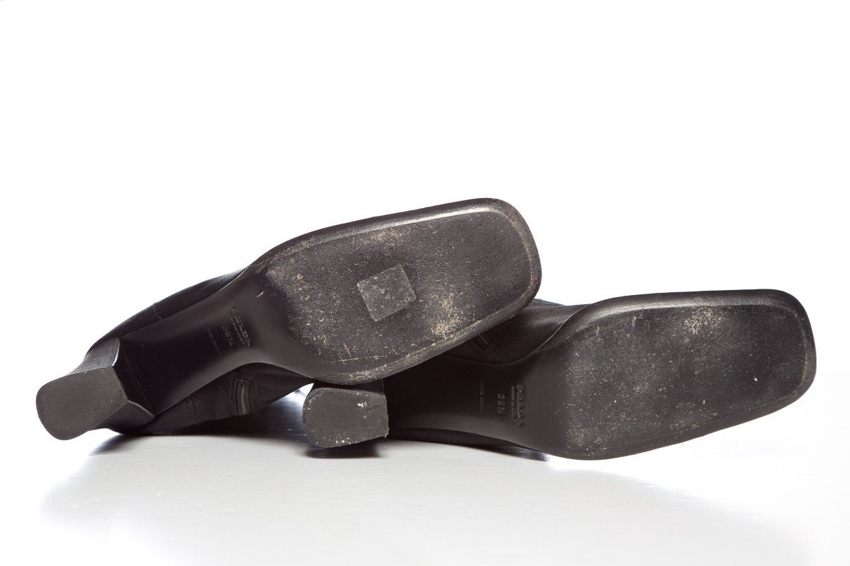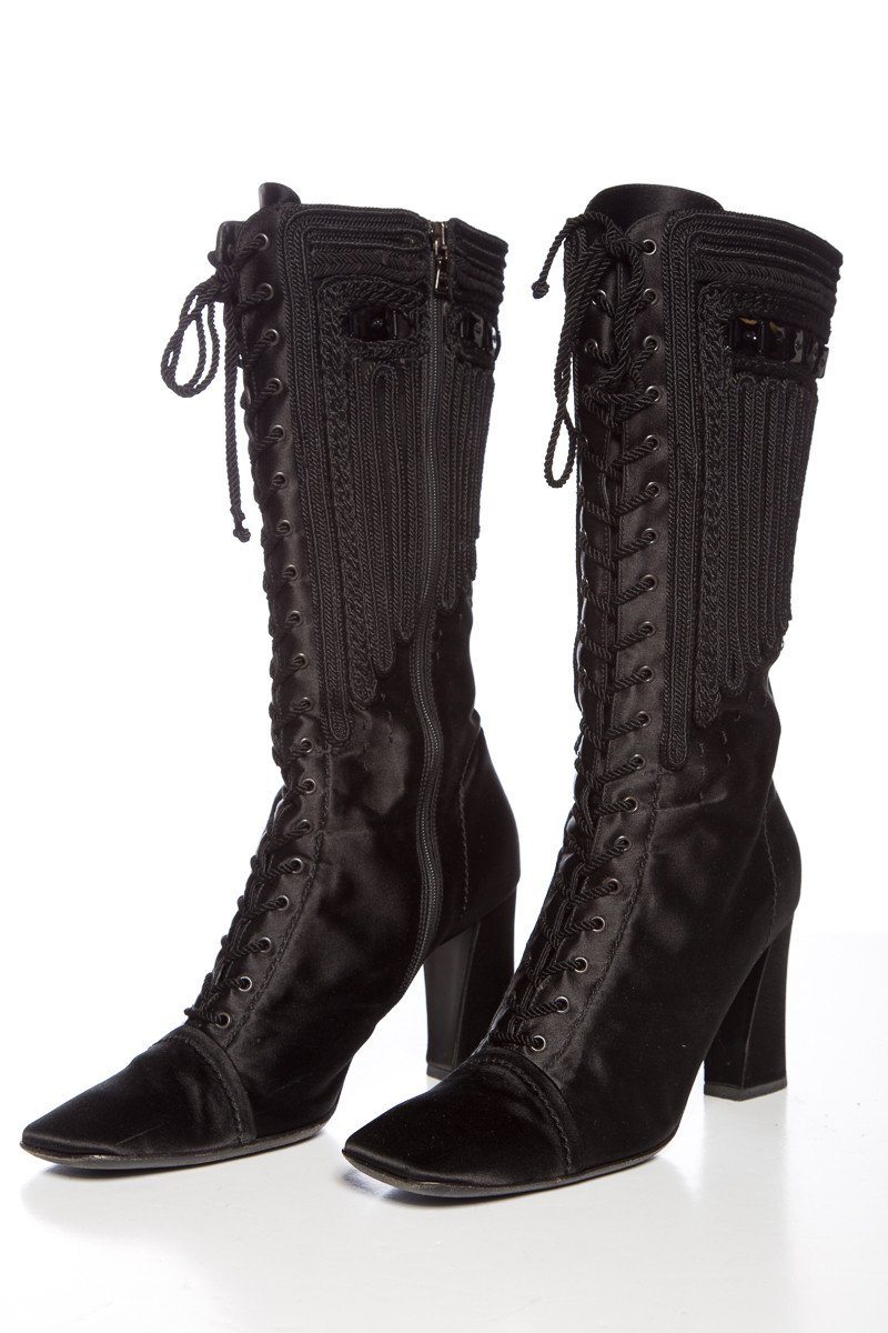 Prada Black Satin Lace-up Square Toe Boots SZ 39.5