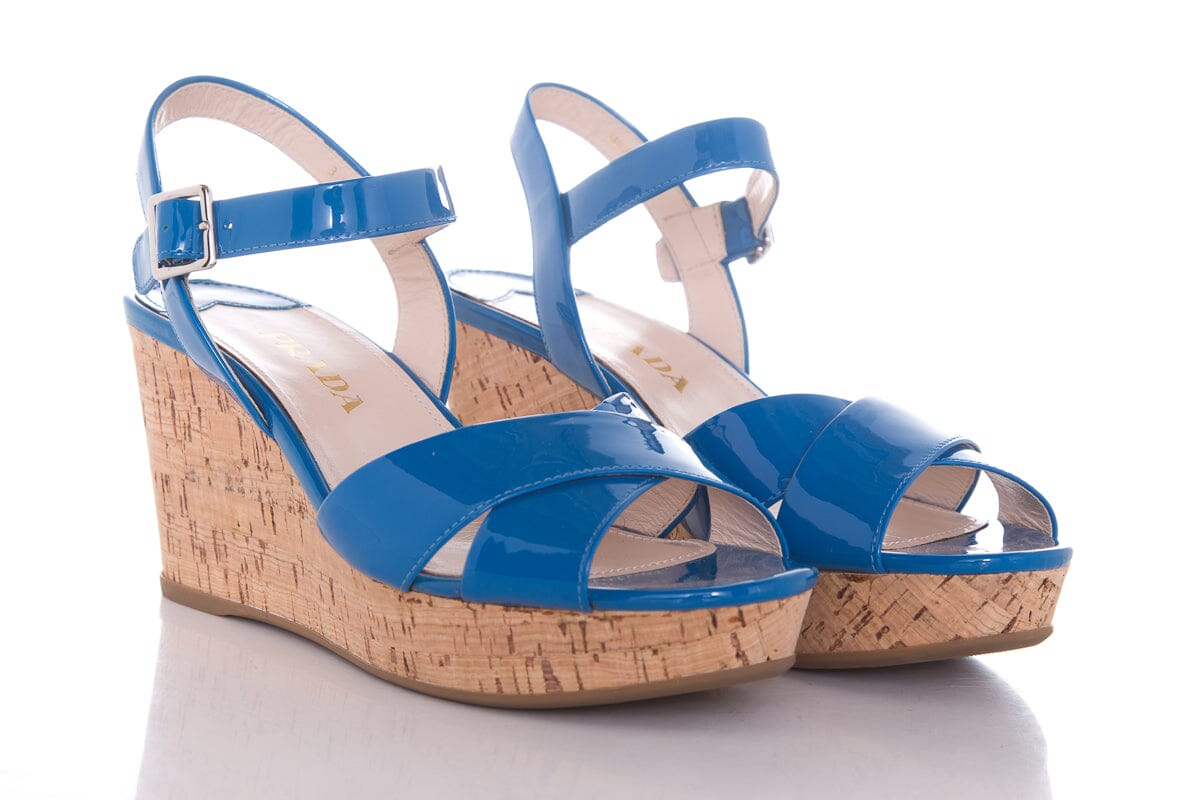Prada Electric Blue Cork Wedge. This item is in excellent condition.