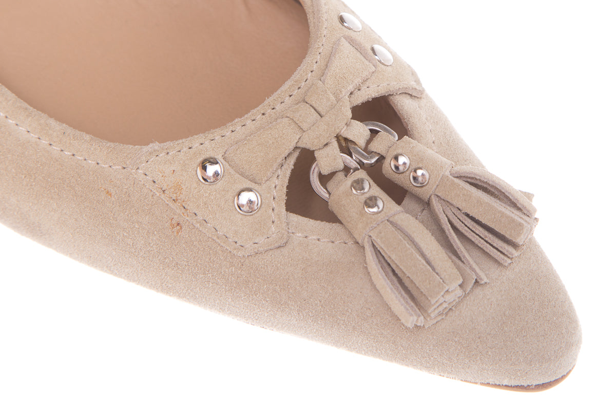 Prada Nude Suede Fringe Tassel Flats. This item is in very good condition.