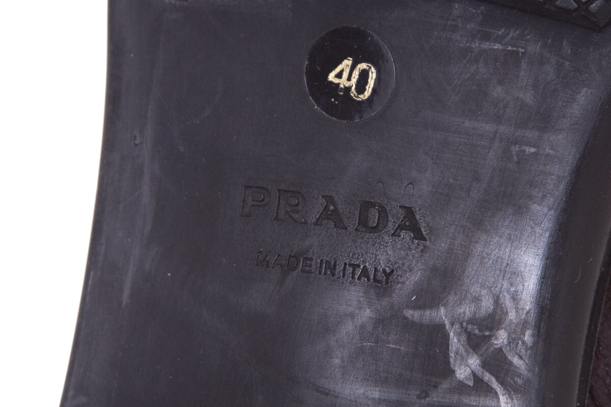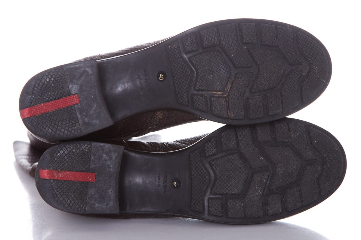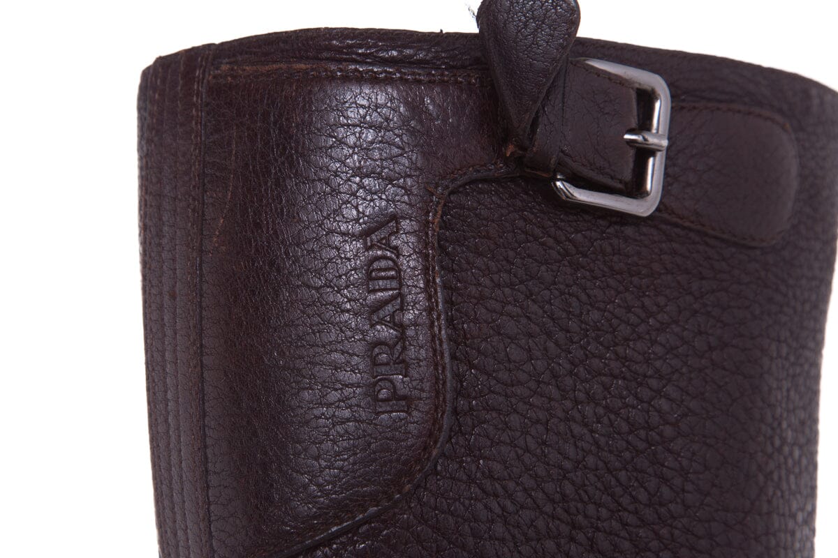 Prada Sport Brown Leather Riding Round Toe Boots w/ interior zipper closure. This item is in good condition with slight wear to soles.