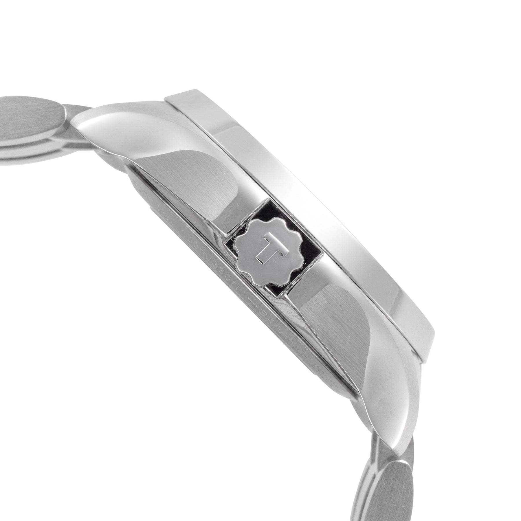 Case Material: Stainless Steel - Case Diameter: 39mm - Case Crystal: Sapphire Crystal Scratch Resistant - Water Resistance: 100 m (330 feet) - Dial Color: Silver - Band: Gray Stainless Steel Bracelet - Movement: Automatic - Features: - Made in Switzerland