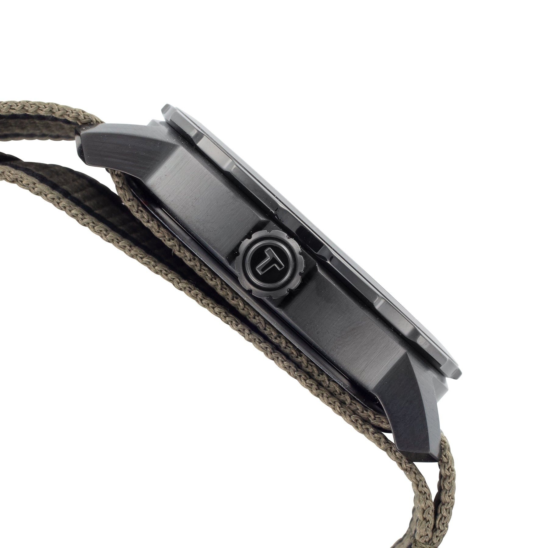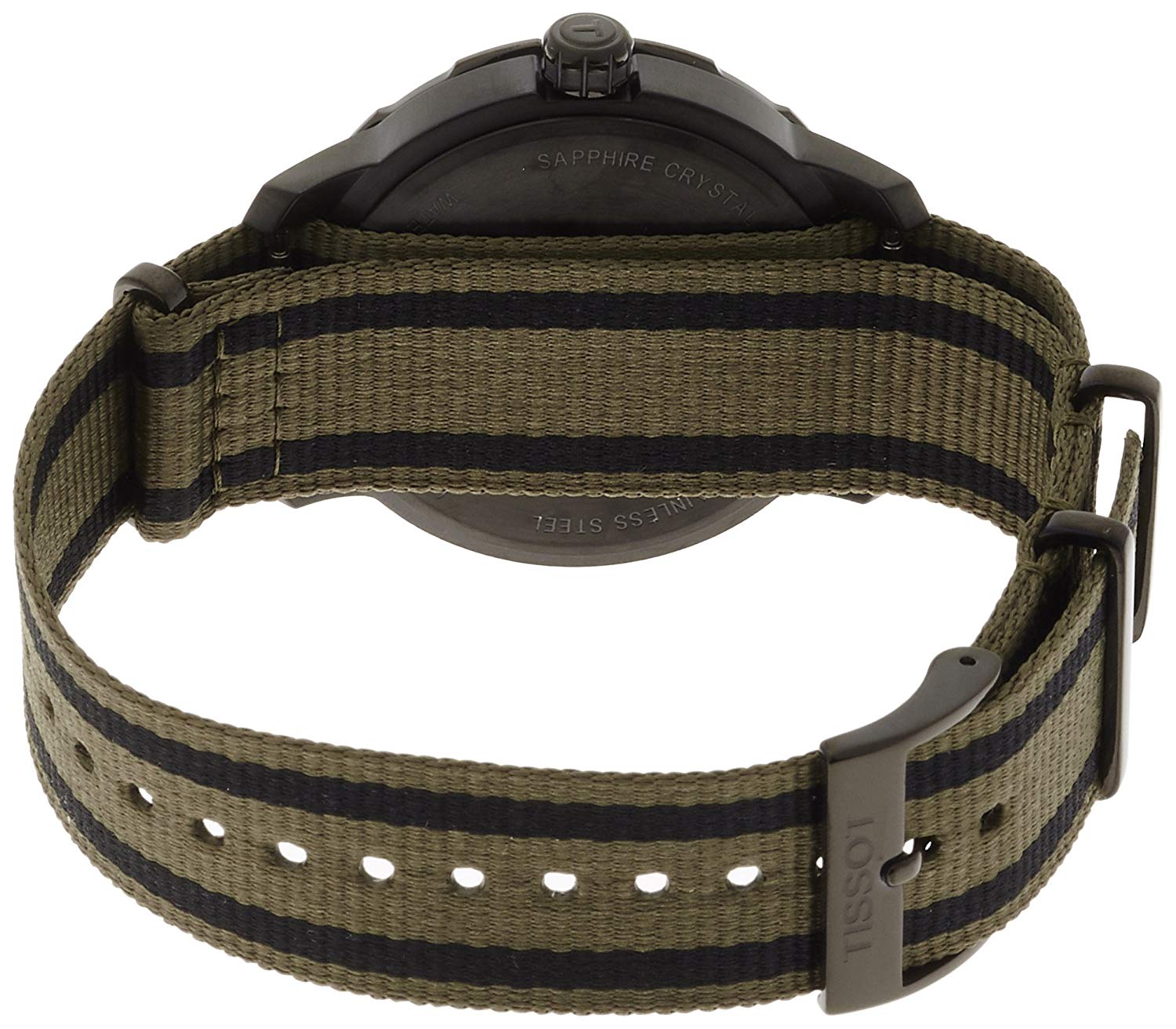 Case Material: Stainless Steel - Case Diameter: 40mm - Case Crystal: Sapphire Crystal Scratch Resistant - Water Resistance: 100 m (330 feet) - Dial Color: Black - Band: Khaki Fabric Strap - Movement: Quartz - Made in Switzerland