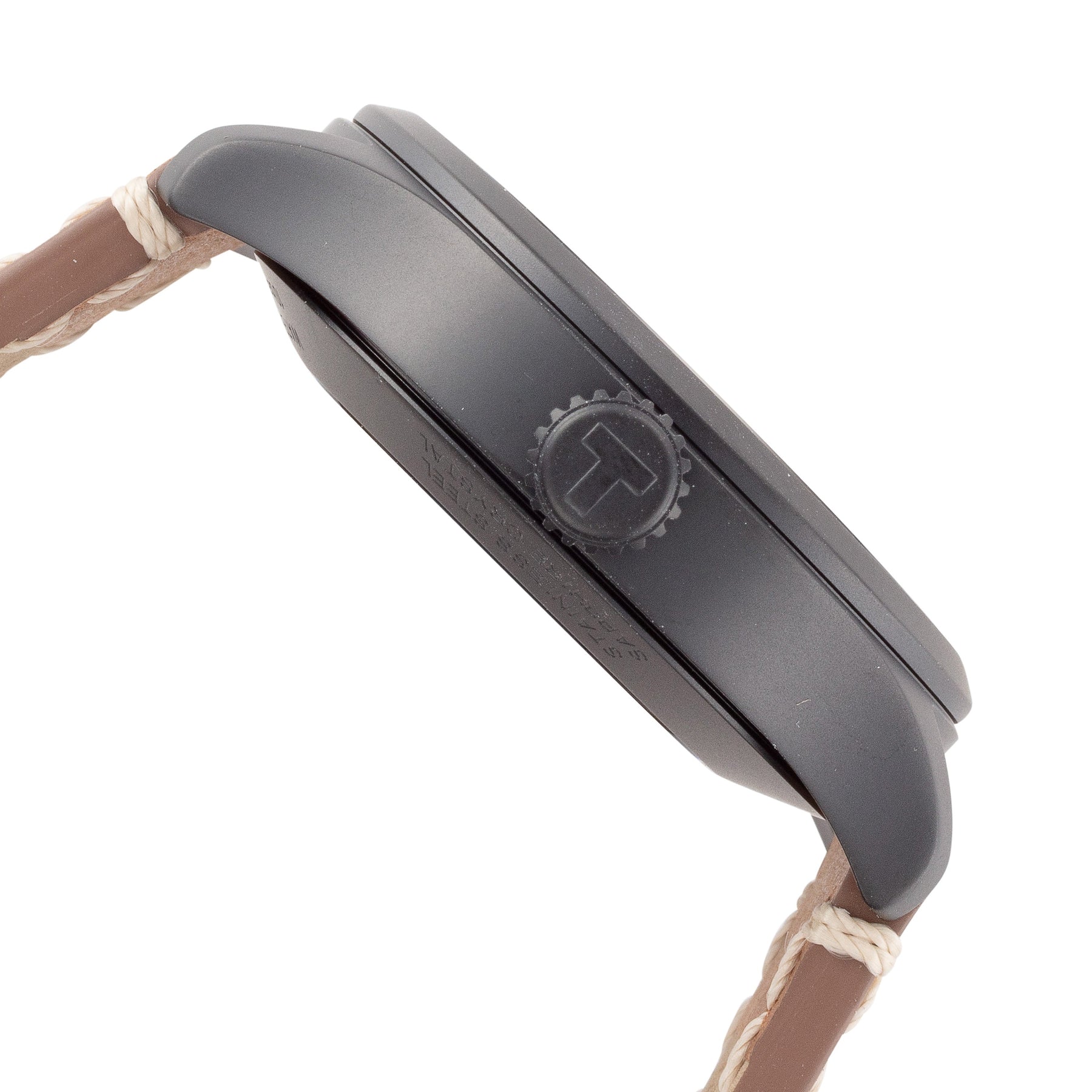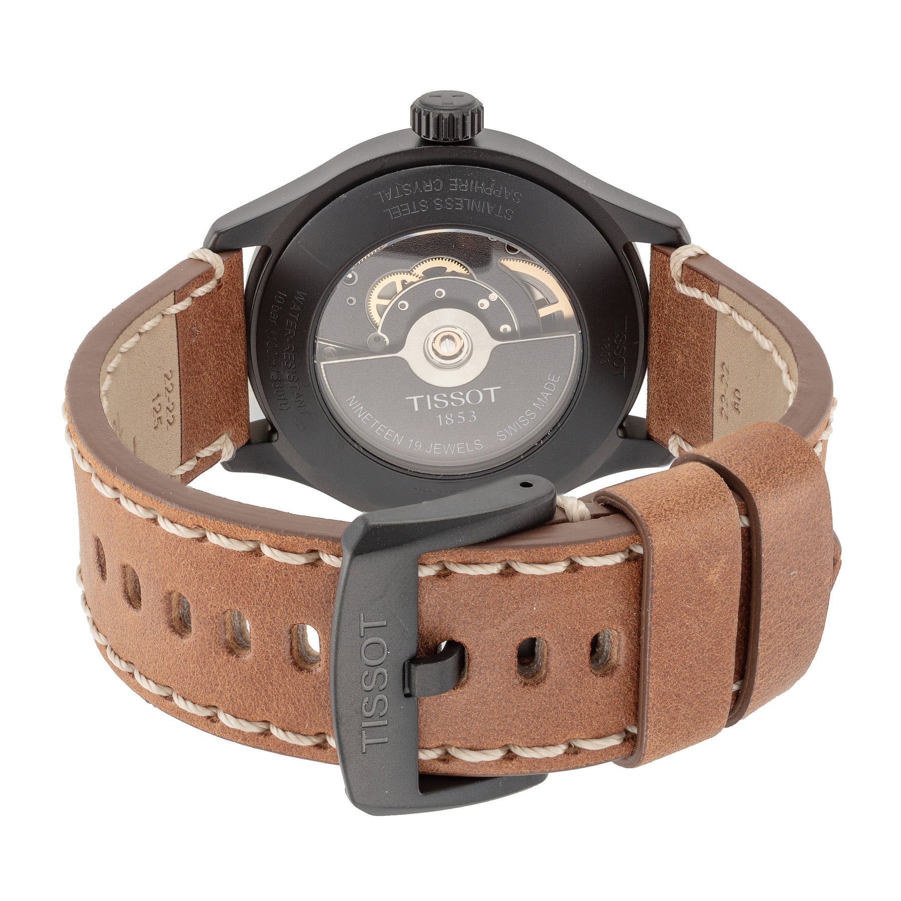 Case Material: Stainless Steel - Case Diameter: 43mm - Case Crystal: Sapphire Crystal Scratch Resistant - Water Resistance: 100 m (330 feet) - Dial Color: Black - Band: Brown Leather Strap - Movement: Automatic - Made in Switzerland