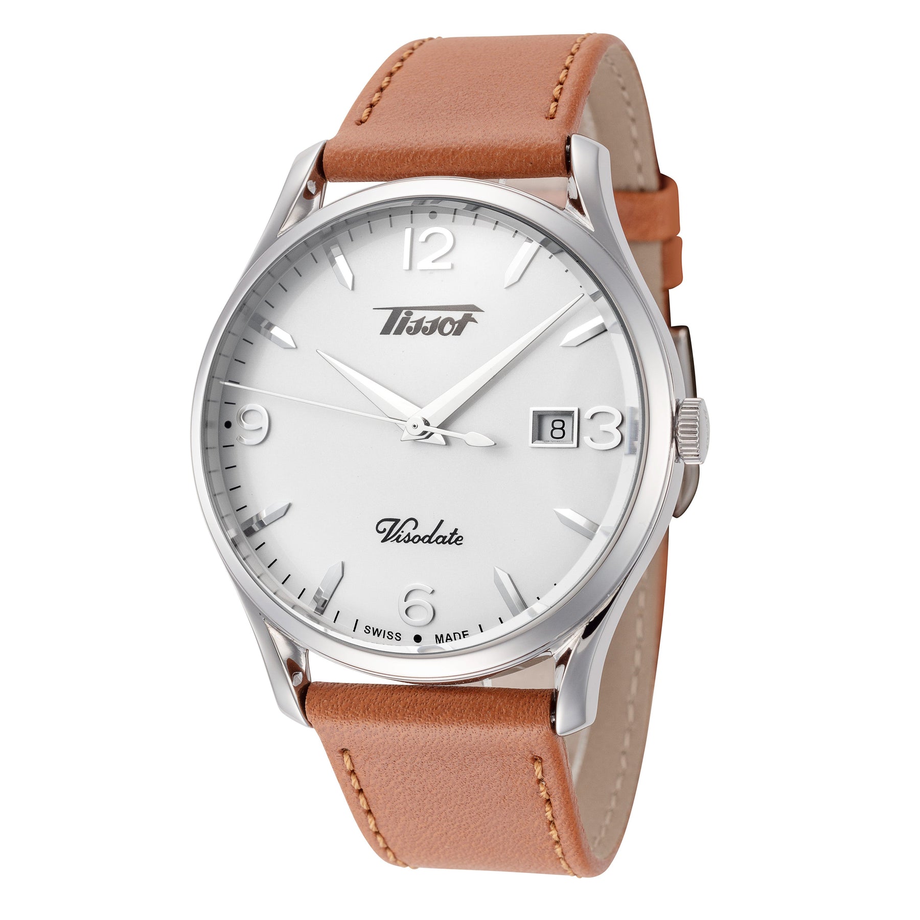 Collection Name: Heritage Visodate, Case Shape: Round, Case Material: Stainless Steel, Case Width (mm): 40, Case Crystal: Sapphire Crystal Scratch Resistant, Case Water Resistance: 30 m (100 feet), Dial Color: Opaline, Band Type: Strap, Band Material: Leather, Band Color: Brown, Band Clasp: Pin Buckle, Movement Type: Quartz, Country of Origin: Made in Switzerland
