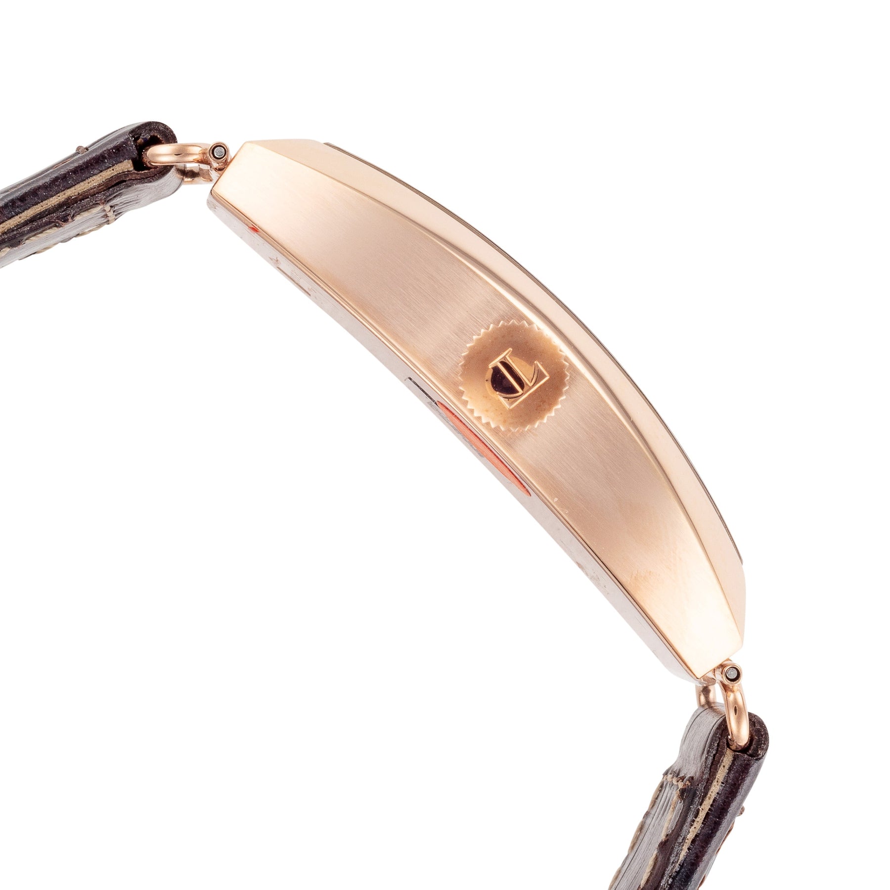 Leather Band, Stainless Steel/ Mineral Crystal Case, 7 in. band length, 16 mm band width, 42.45 mm case width, 10.5mm case thickness, Heritage Collection, Cushion Shape, Butterfly Clasp Strap Band, Quartz Movement, 30 m (100 feet) Water Resistant, Made in Switzerland