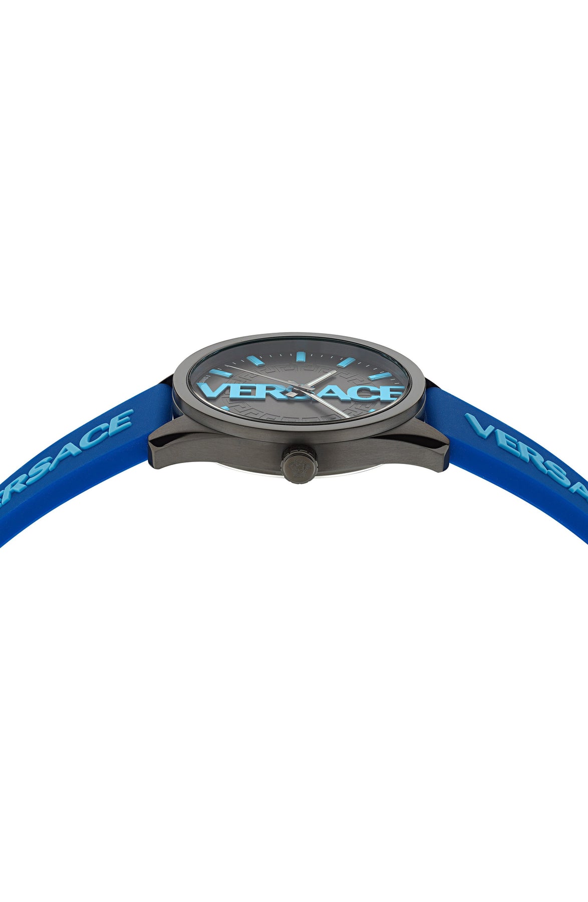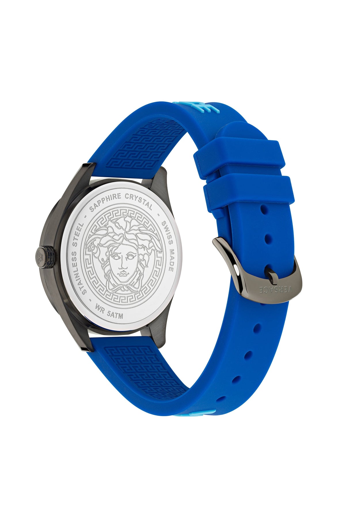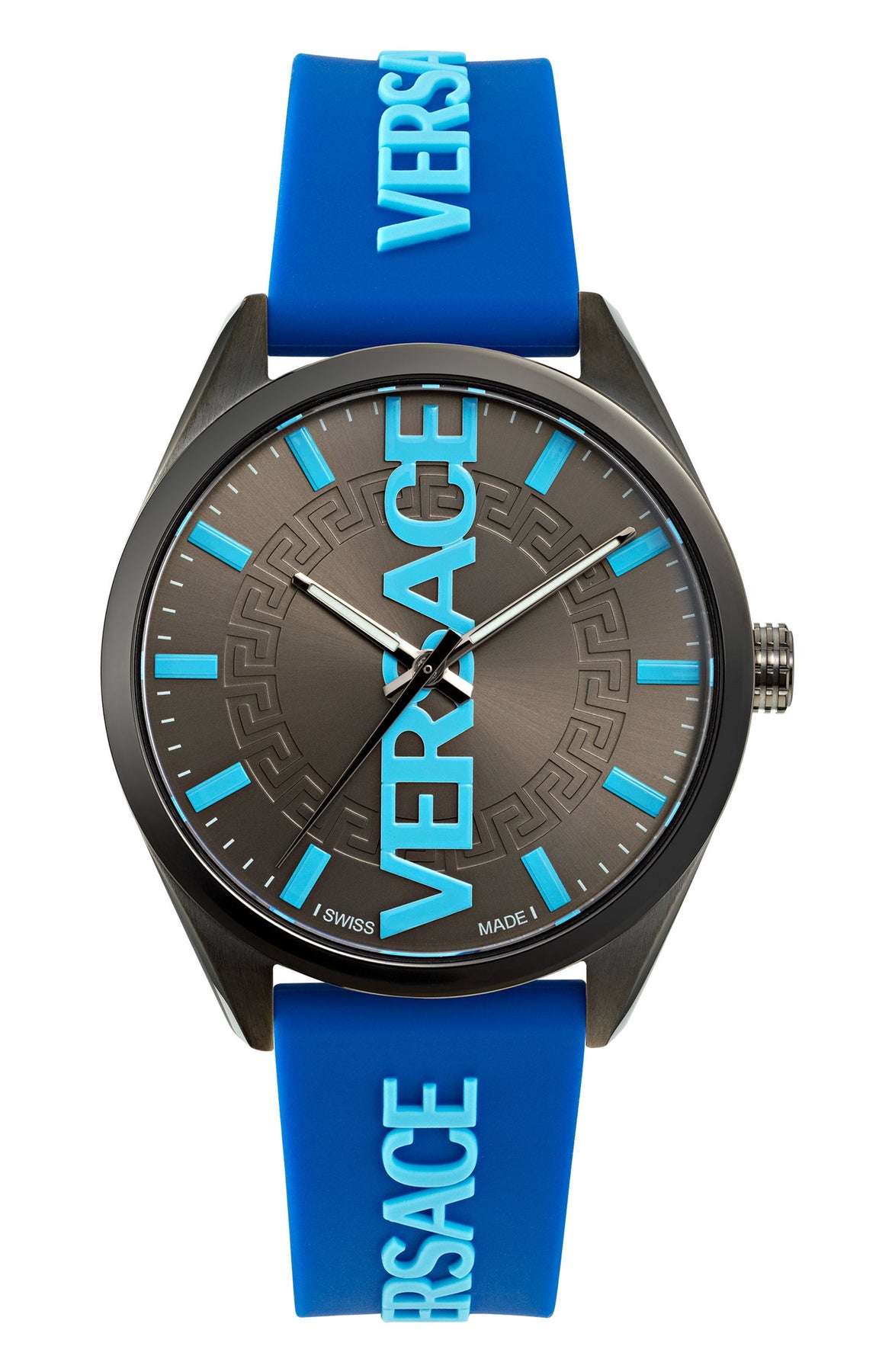 Case Material: Stainless Steel - Case Diameter: 42mm - Case Crystal: Sapphire Crystal Scratch Resistant - Water Resistance: 50 m (165 feet) - Dial Color: Grey - Band: Blue Silicone Strap - Movement: Quartz - Made in Switzerland