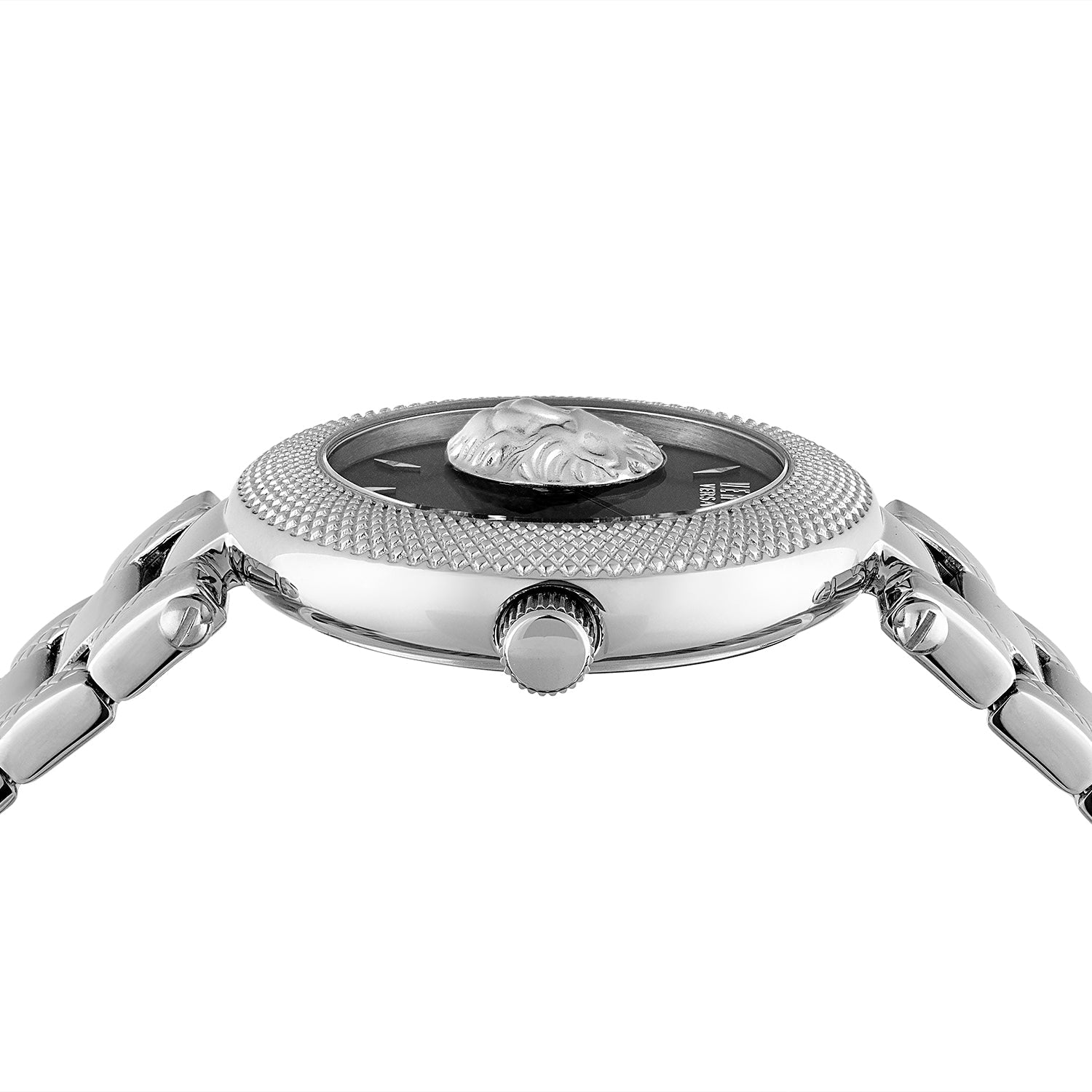 Case Material: Stainless Steel - Case Diameter: 36mm - Case Crystal: Mineral Crystal - Water Resistance: 30 m (100 feet) - Dial Color: Black - Band: Silver Stainless Steel Bracelet - Movement: Quartz - Features: - Made in China