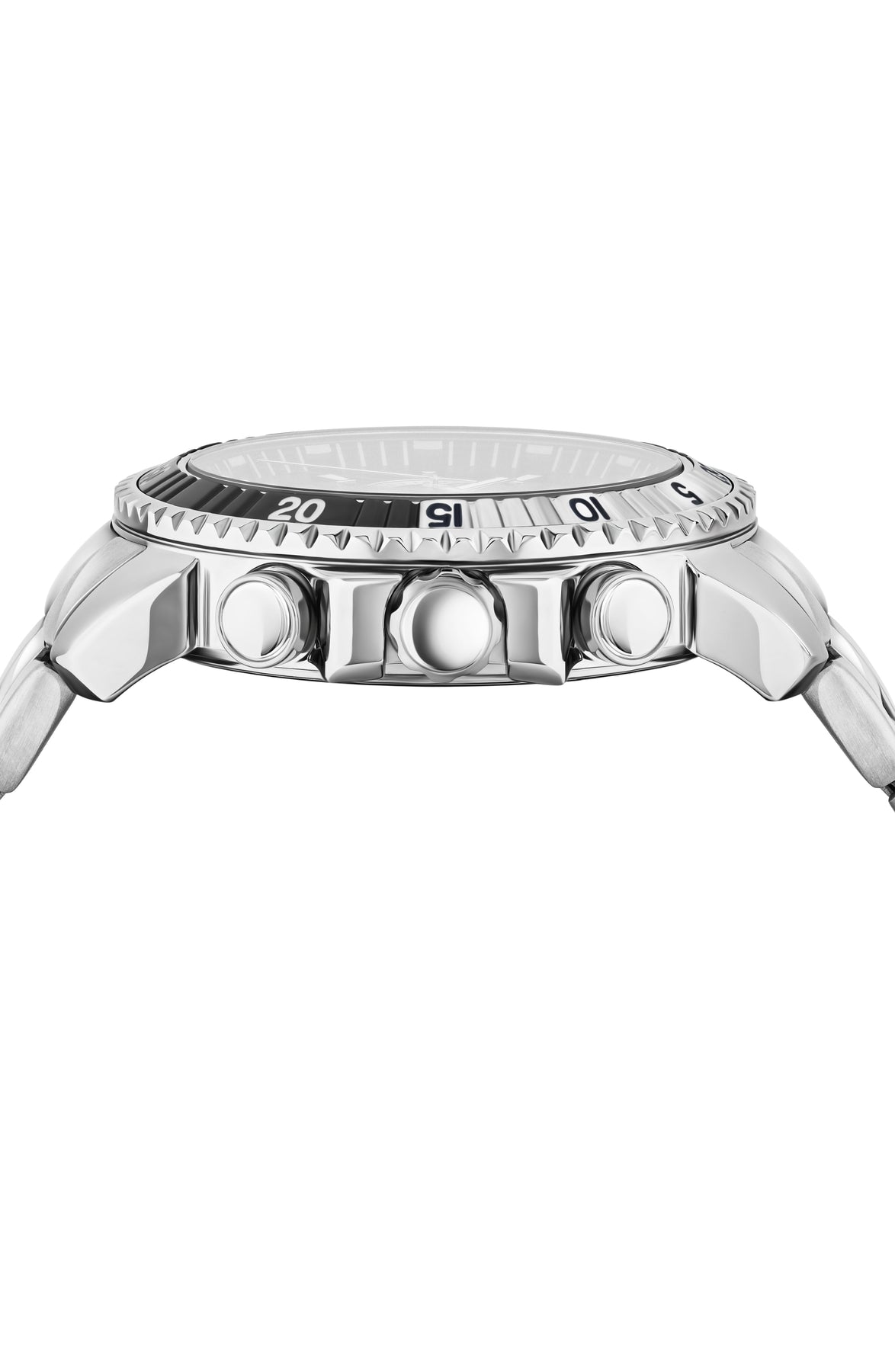 Case Material: Stainless Steel - Case Diameter: 45mm - Case Crystal: Mineral Crystal - Water Resistance: 50 m (165 feet) - Dial Color: Black - Band: Silver Stainless Steel Bracelet - Movement: Quartz - Features: Chronograph - Made in China