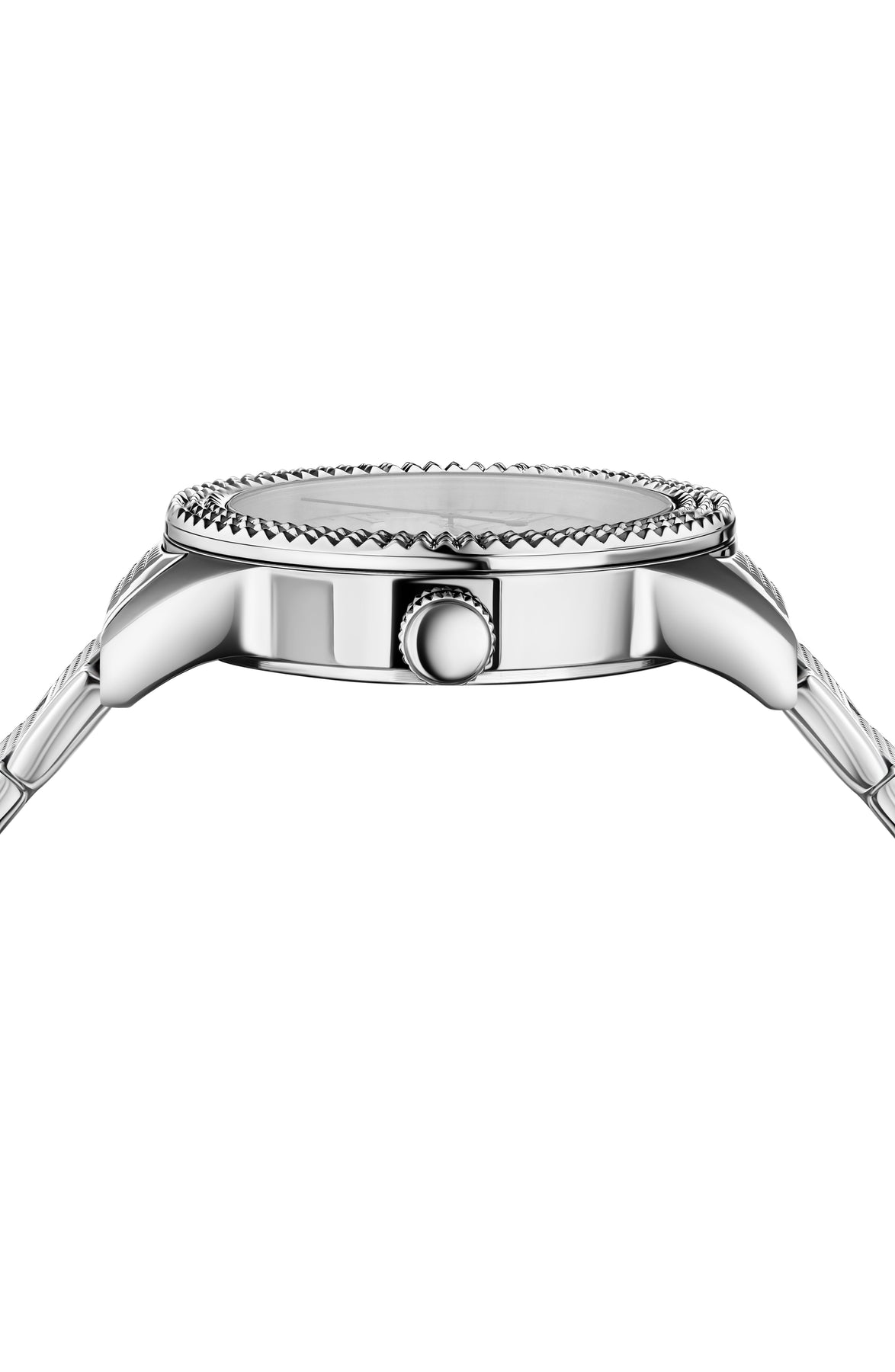 Case Material: Stainless Steel - Case Diameter: 38mm - Case Crystal: Mineral Crystal - Water Resistance: 30 m (100 feet) - Dial Color: Silver - Band: Silver Stainless Steel Bracelet - Movement: Quartz - Features: - Made in China