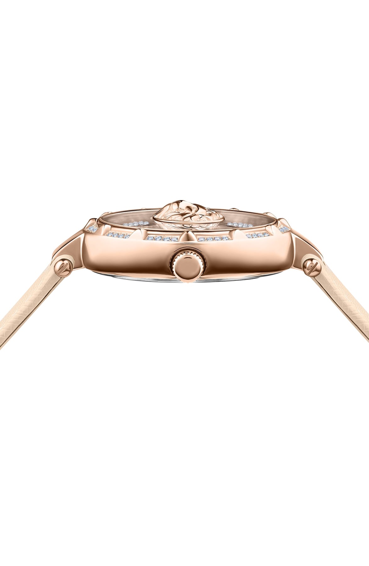 Case Material: Stainless Steel - Case Diameter: 36mm - Case Crystal: Mineral Crystal - Water Resistance: 30 m (100 feet) - Dial Color: Rose Gold - Band: Beige Leather Strap - Movement: Quartz - Made in Japan