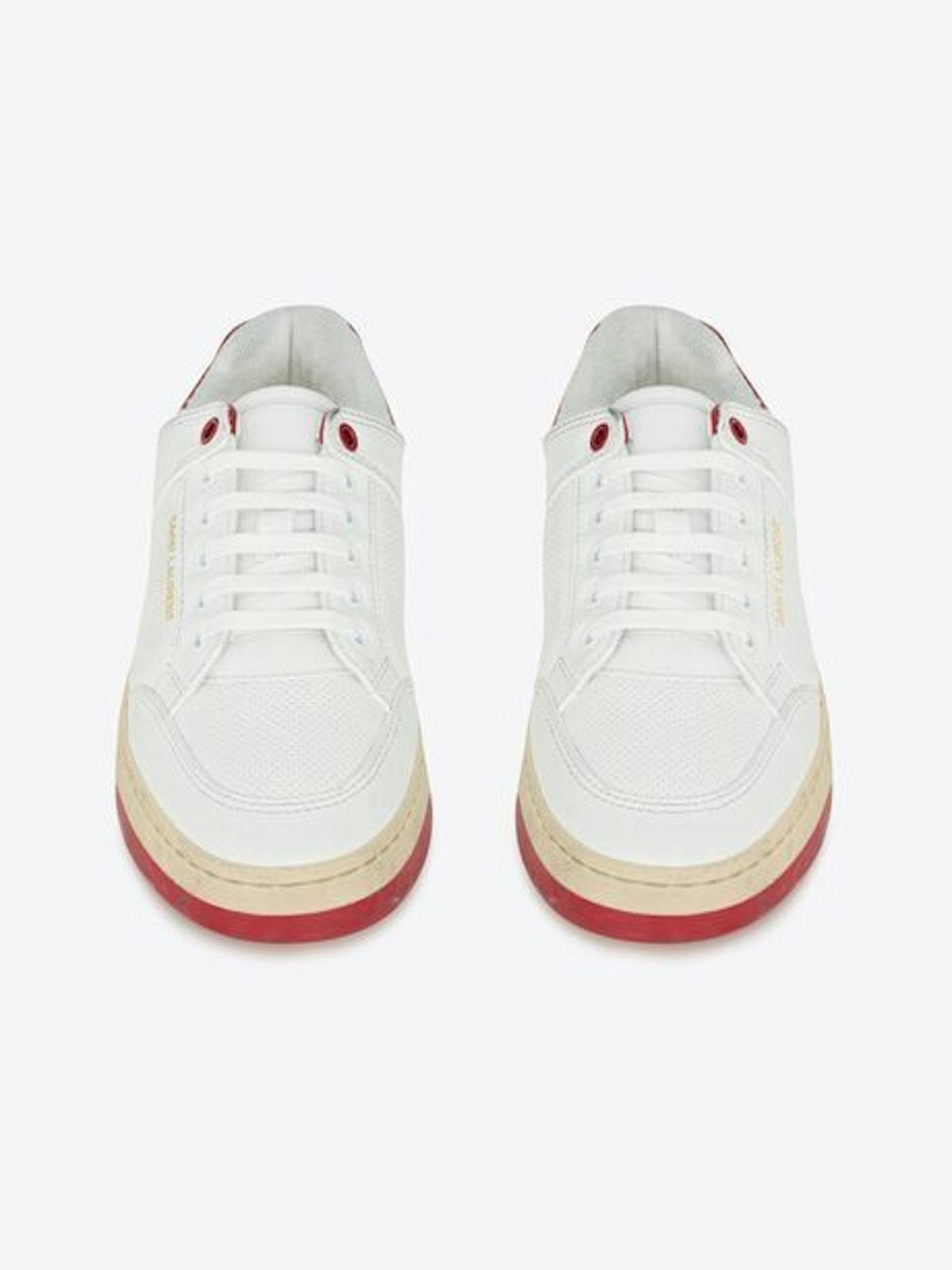 These SL/61 sneakers are the perfect mix of luxury and street style, with white grained calfskin, red details, and a gold-tone Saint Laurent signature. The lace-up closure and rubber sole with embossed Saint Laurent logo make these sneakers both stylish and comfortable. It's the ideal way to add a touch of high fashion to any casual outfit.