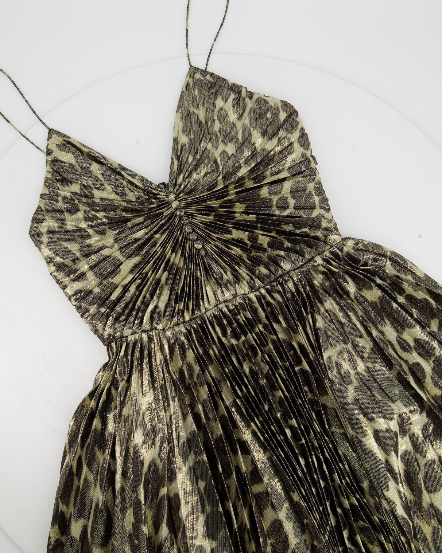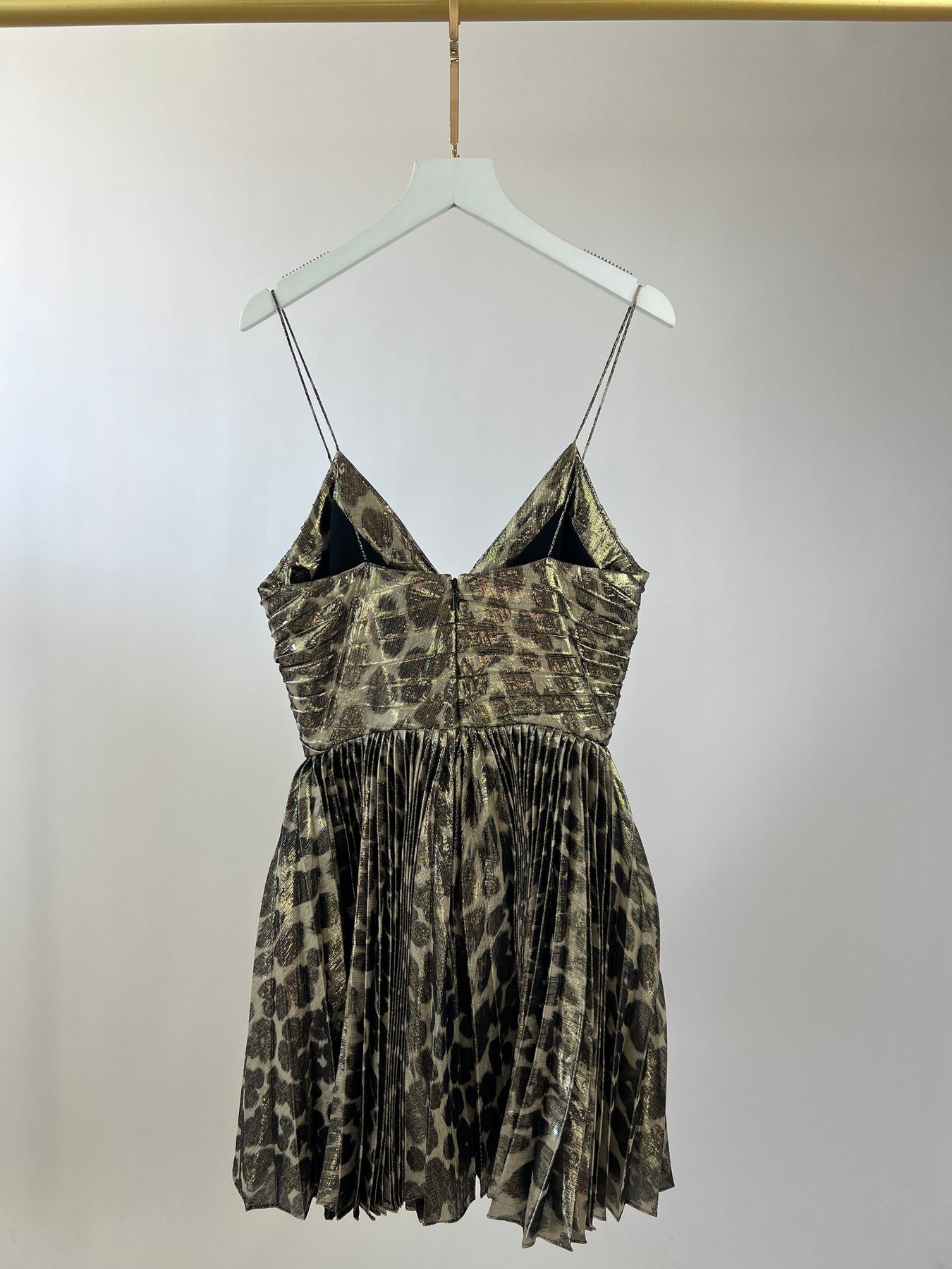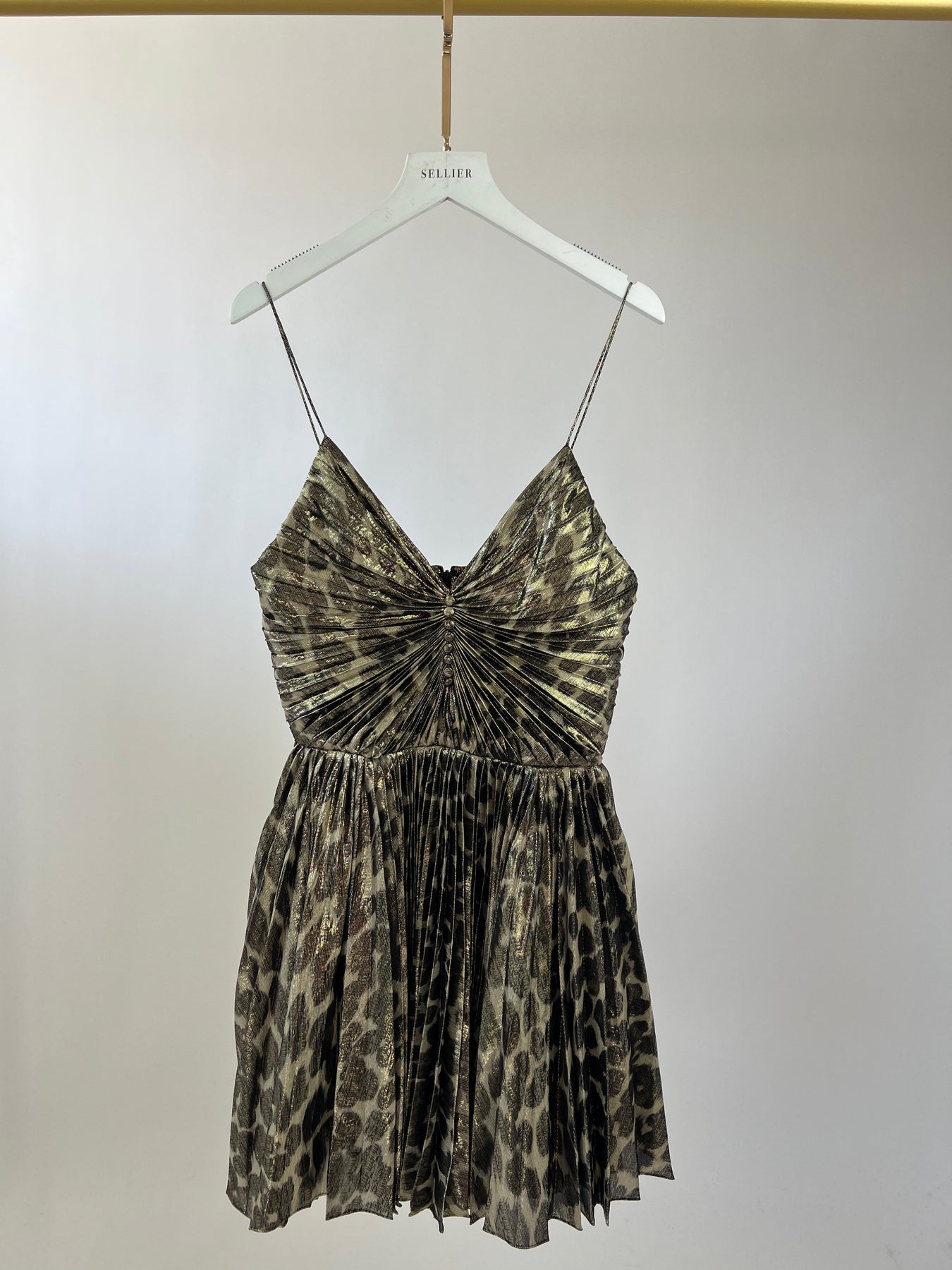 Saint Laurent Leopard Metallic Pleated Mini Dress FR 36 (UK 8)