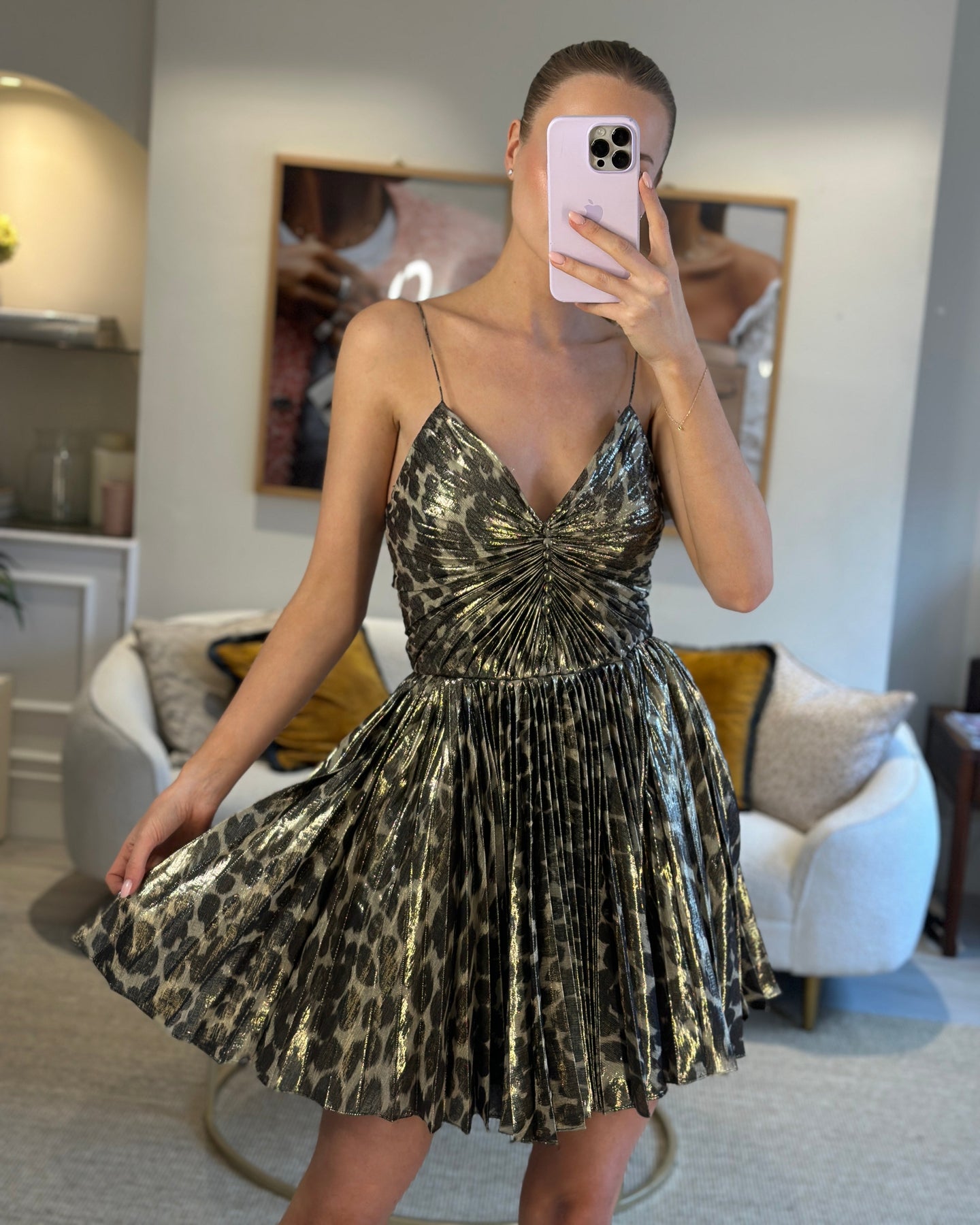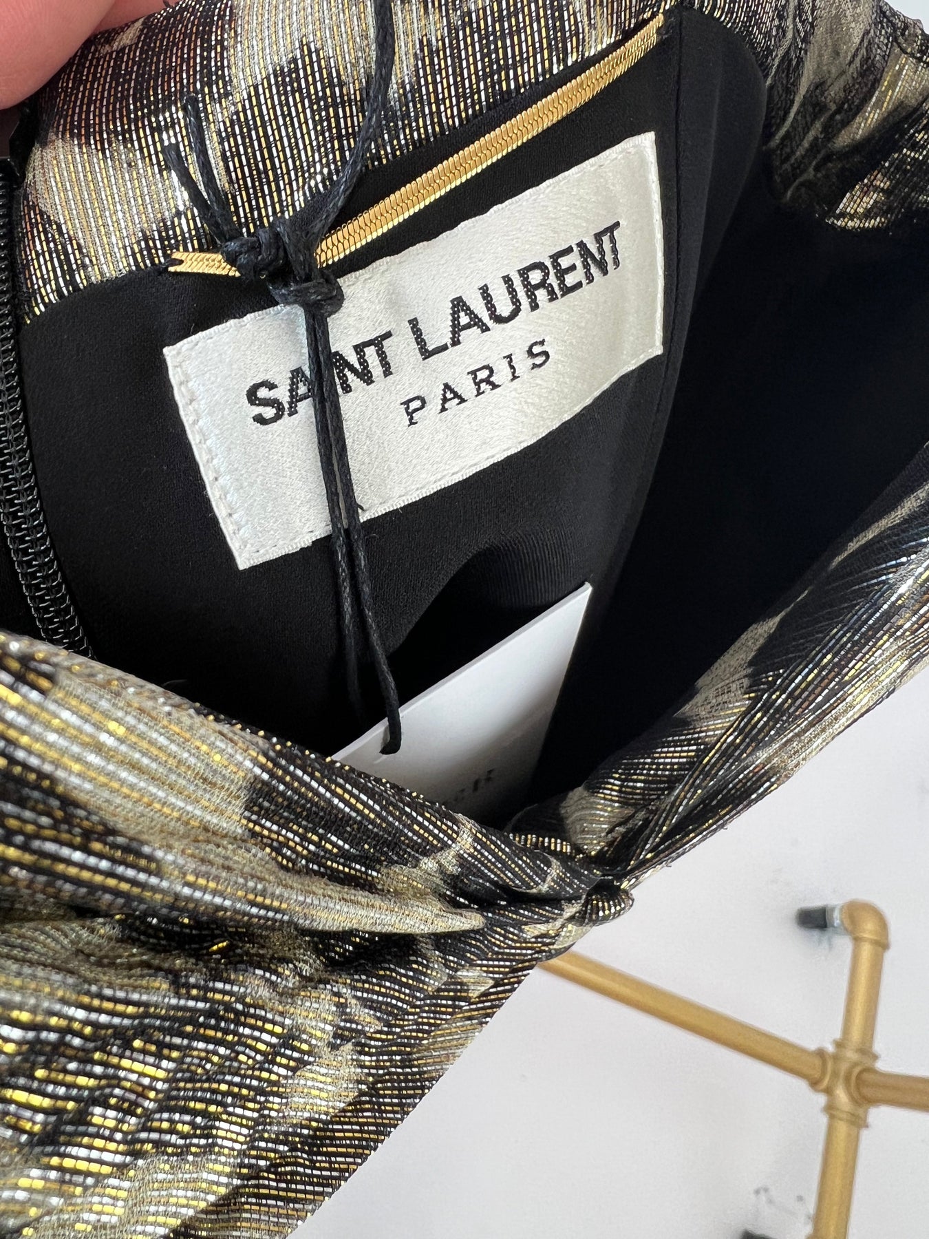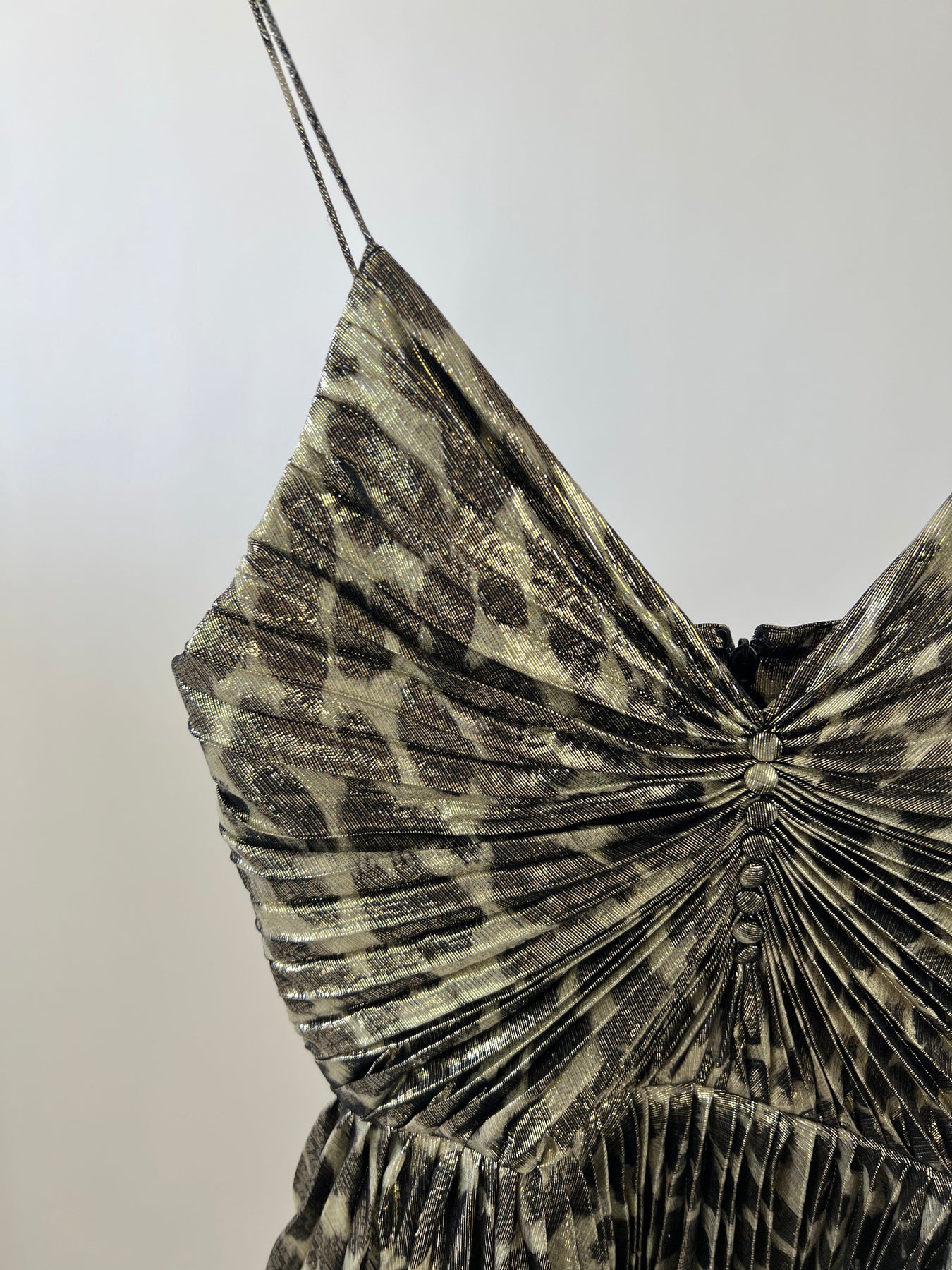 Saint Laurent Leopard Metallic Pleated Mini Dress FR 36 (UK 8)