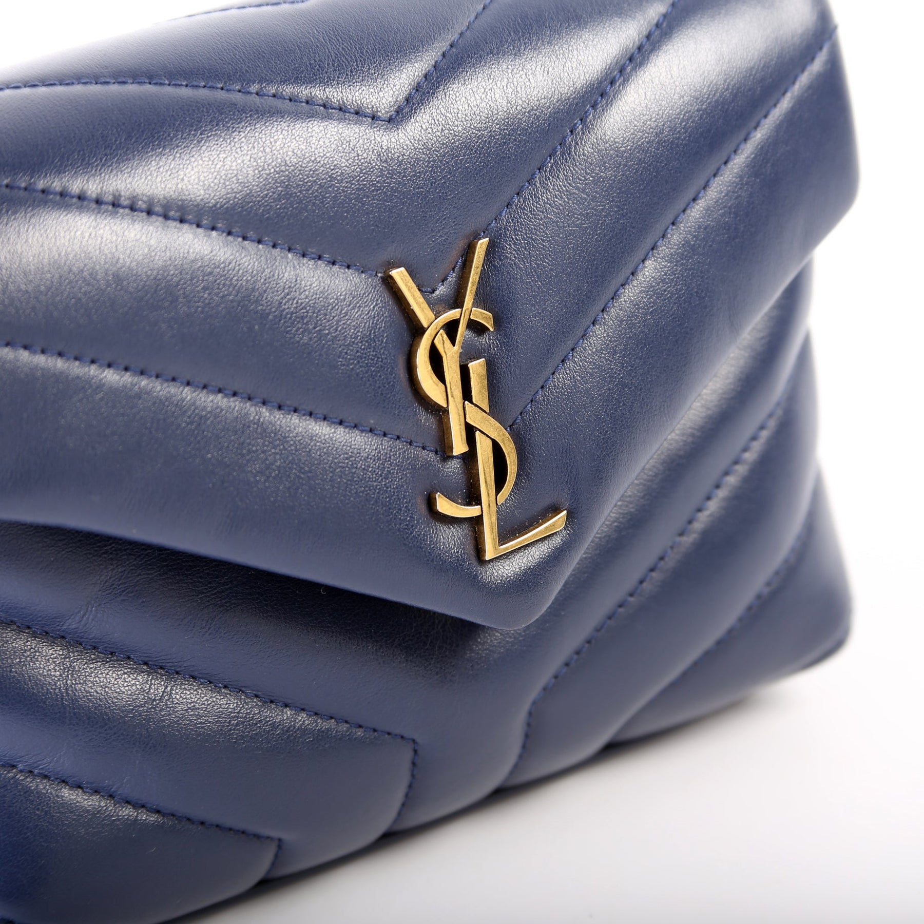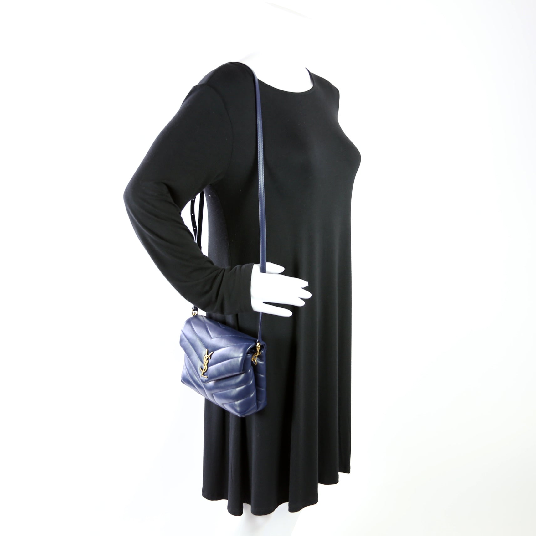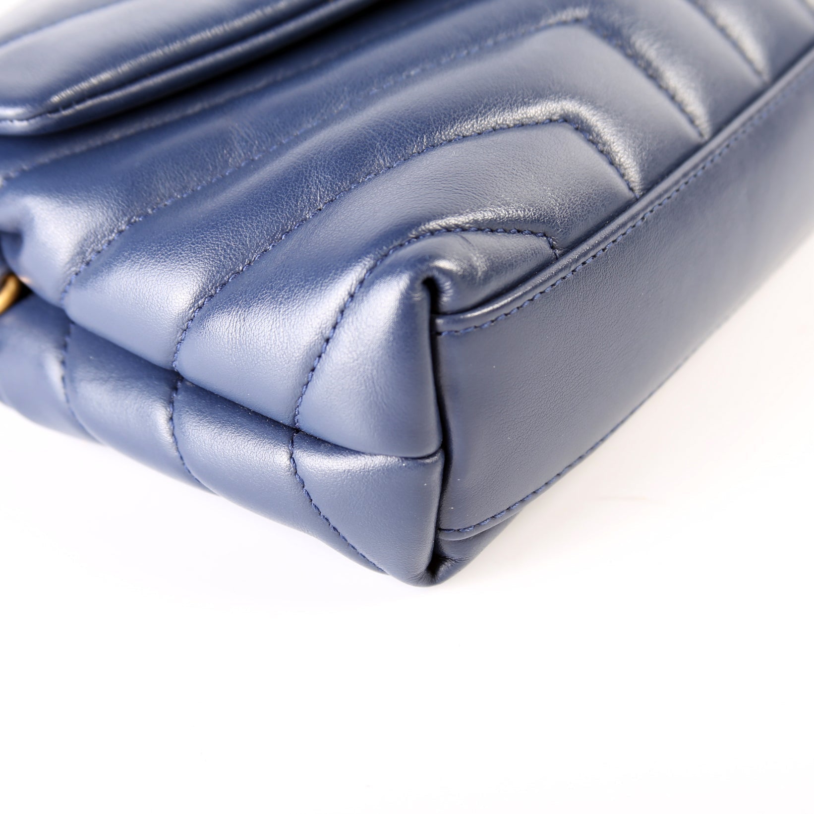 This Saint Laurent LouLou Satchel Toy Crossbody is d 100% . The exterior is in the classic Saint Laurent chevron leather.