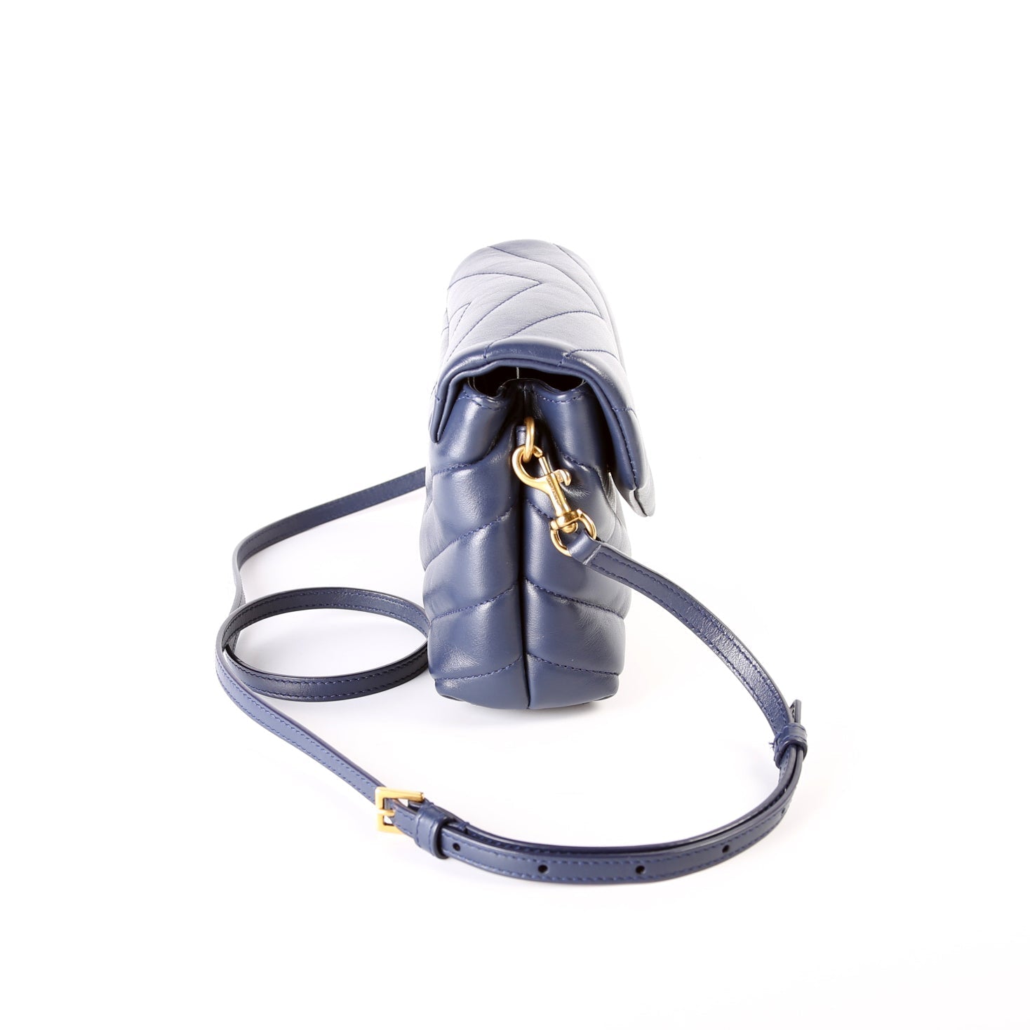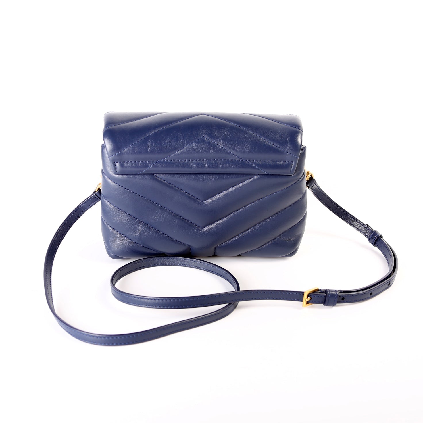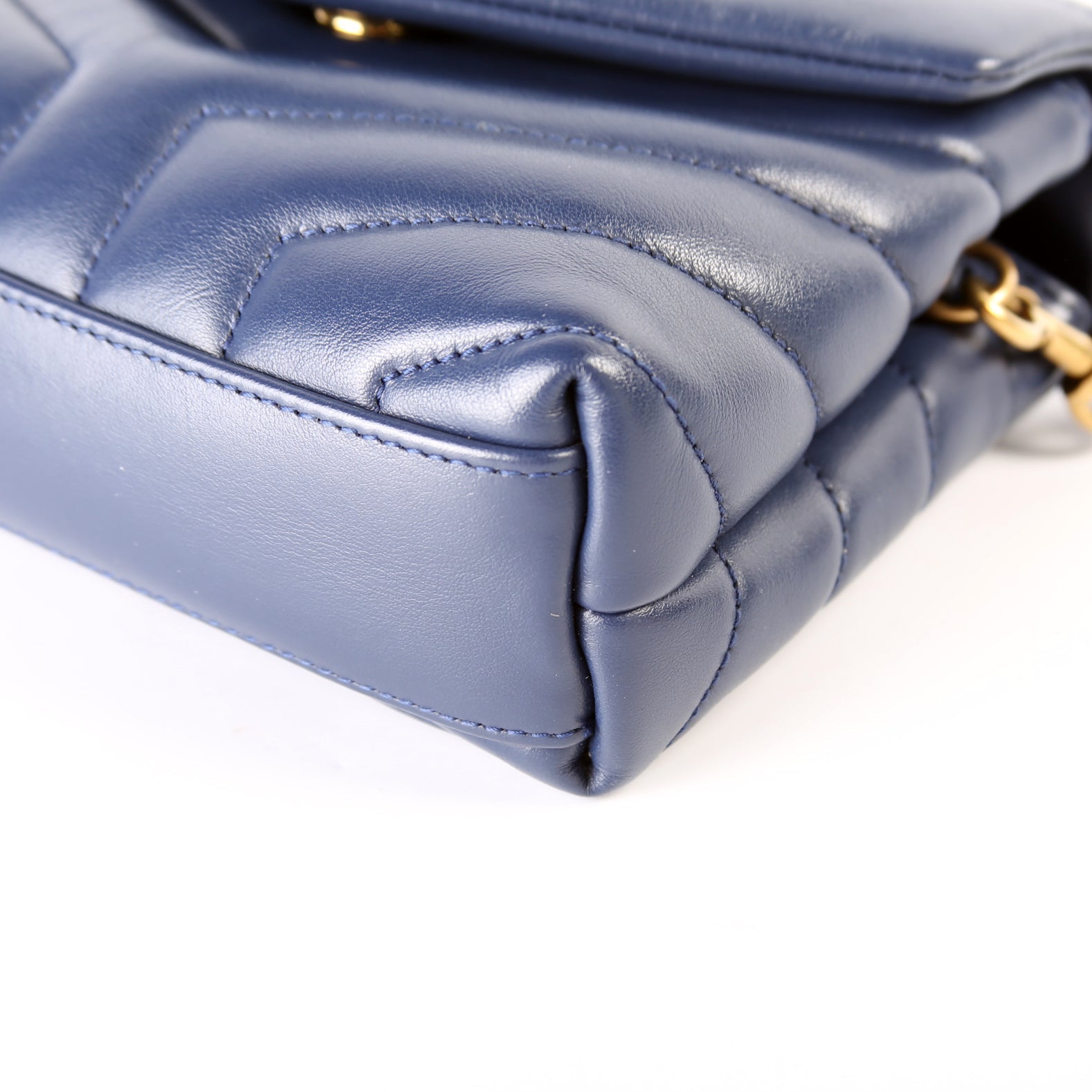 This Saint Laurent LouLou Satchel Toy Crossbody is d 100% . The exterior is in the classic Saint Laurent chevron leather.