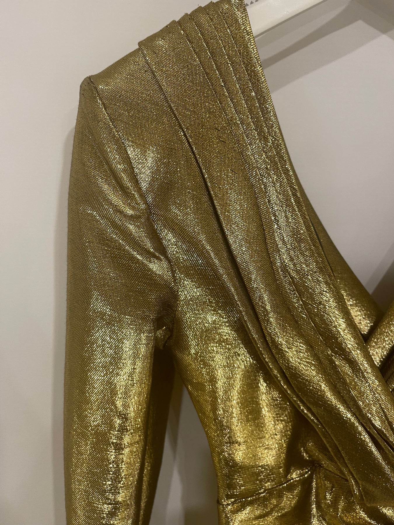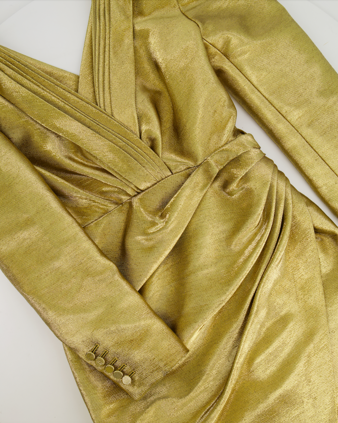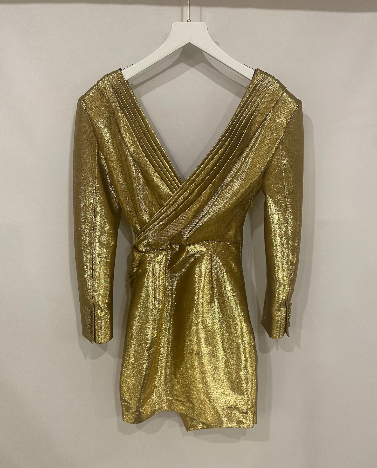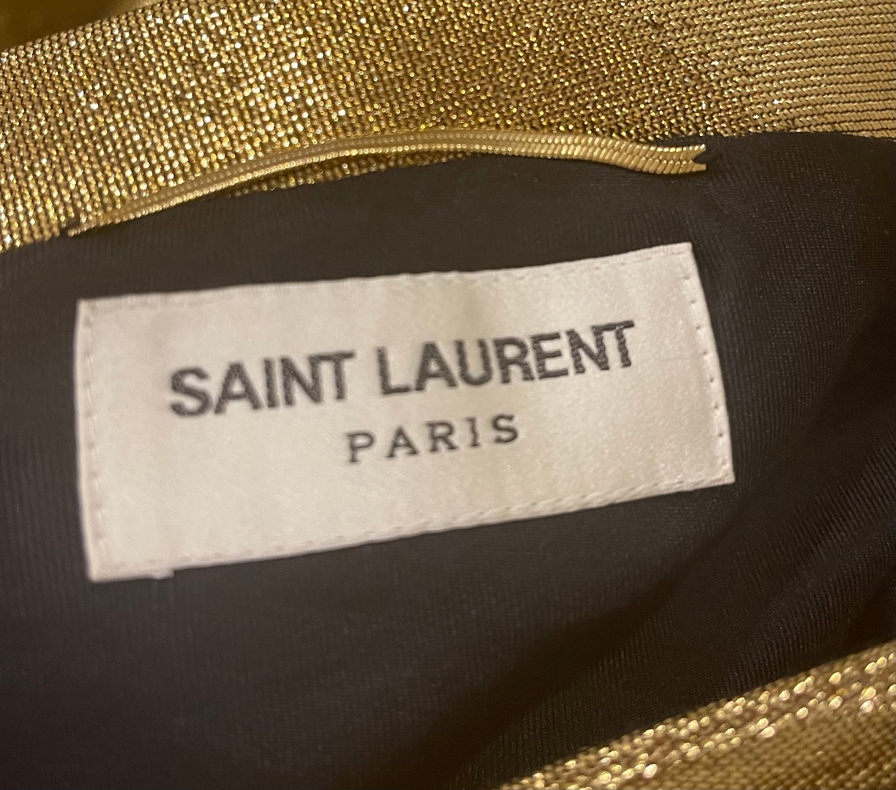 Saint Laurent Gold Embellished Long-Sleeve Mini Dress Size FR 38 (UK 10)