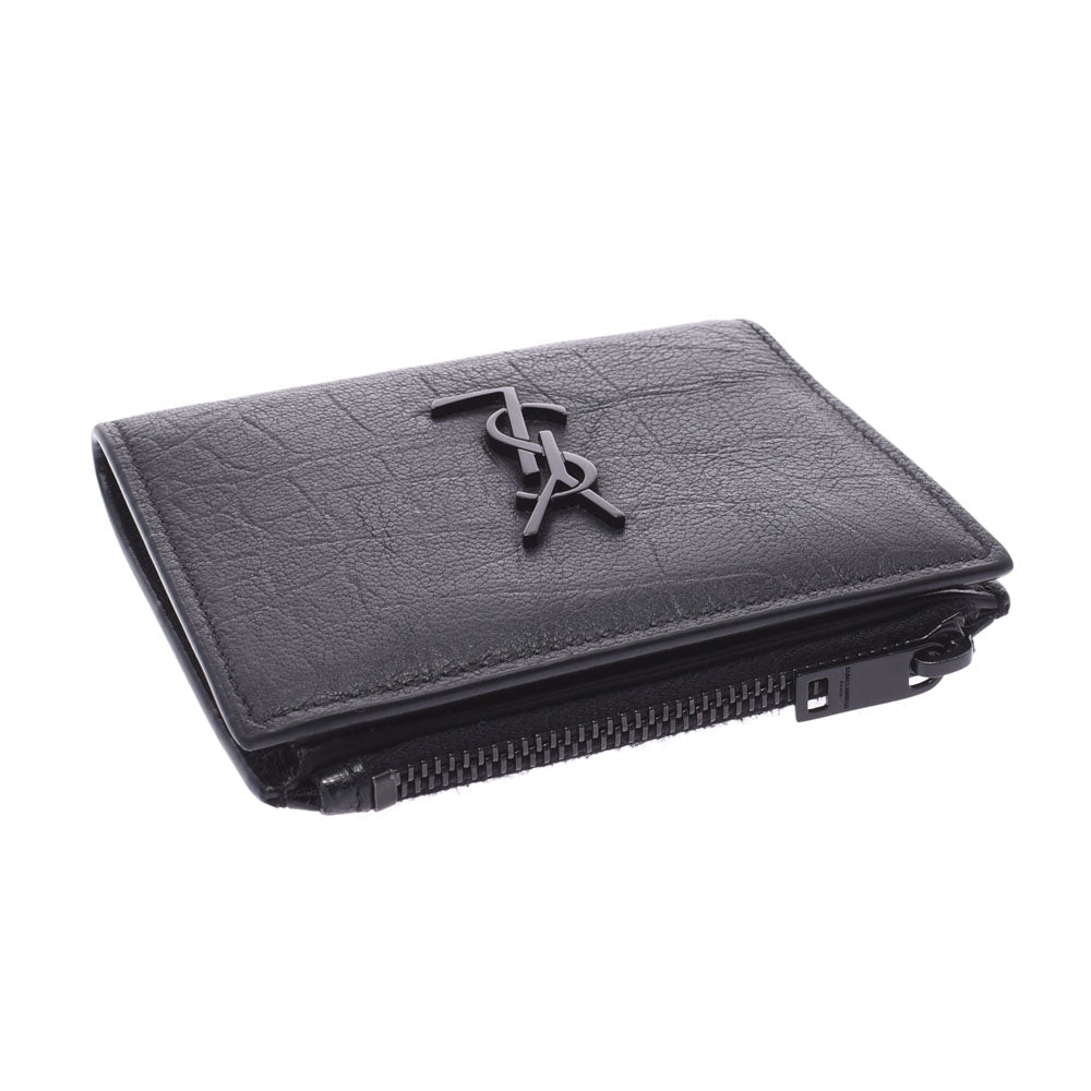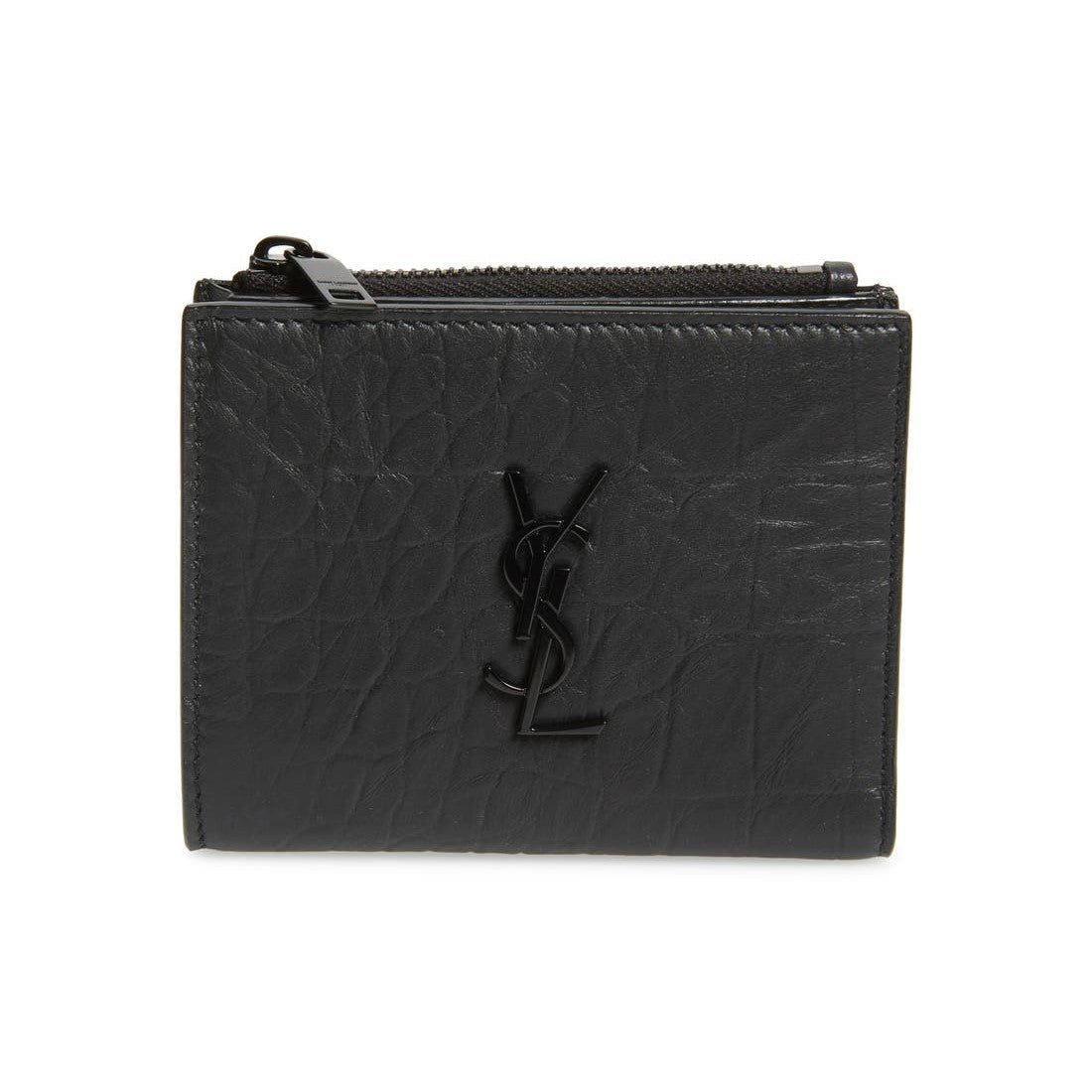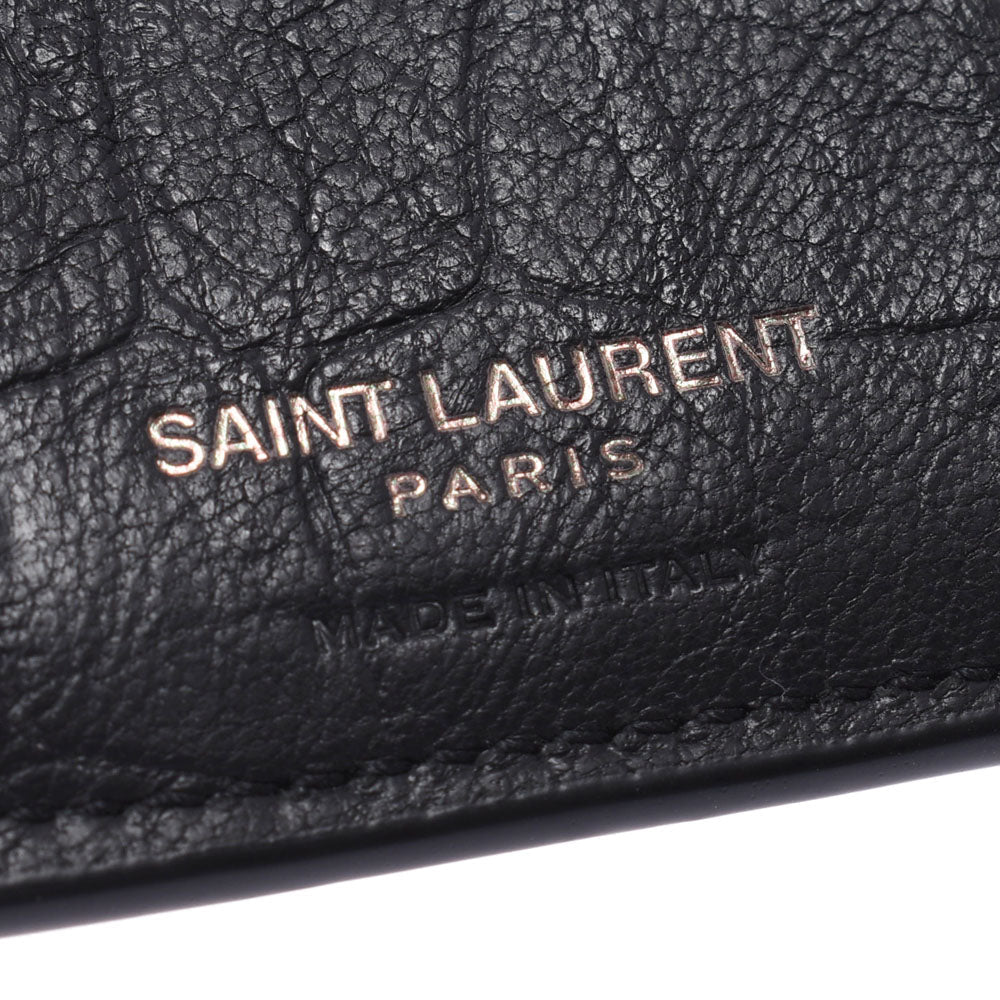 This Saint Laurent black leather wallet is perfect for everyday use. The soft calfskin leather in crocodile print is paired with the YSL monogram in black hardware. Sleek and classy, this wallet is the perfect size for smaller bags, while still offering room for all of your essentials.
