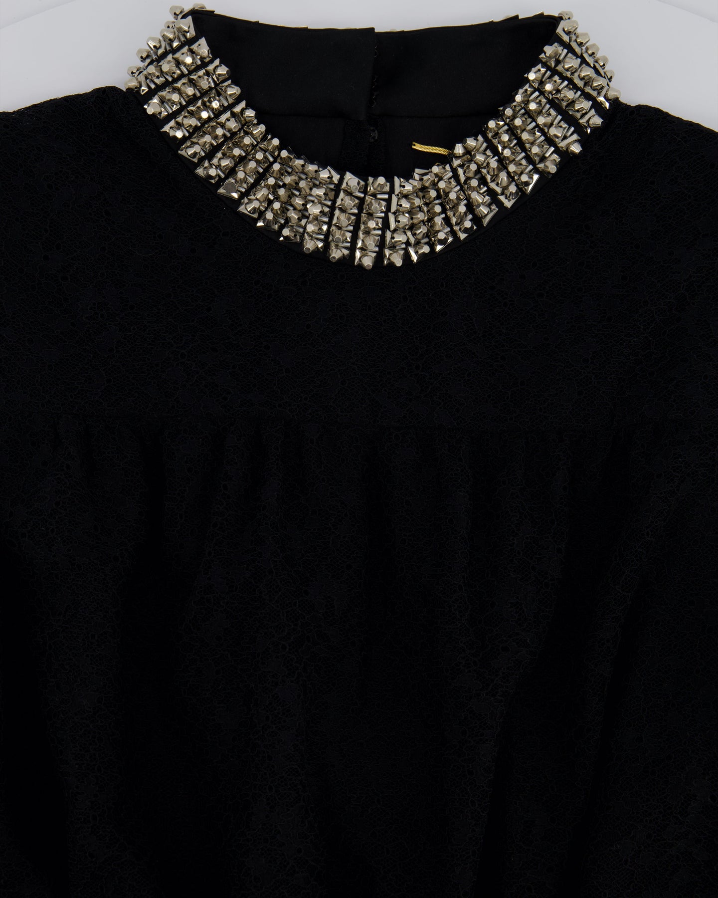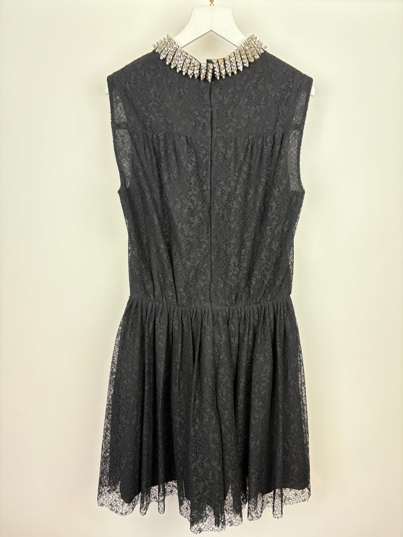 Saint Laurent Black Floral Lace Sleeveless Dress with Studded Neck Detail Size FR 38 (UK 10)