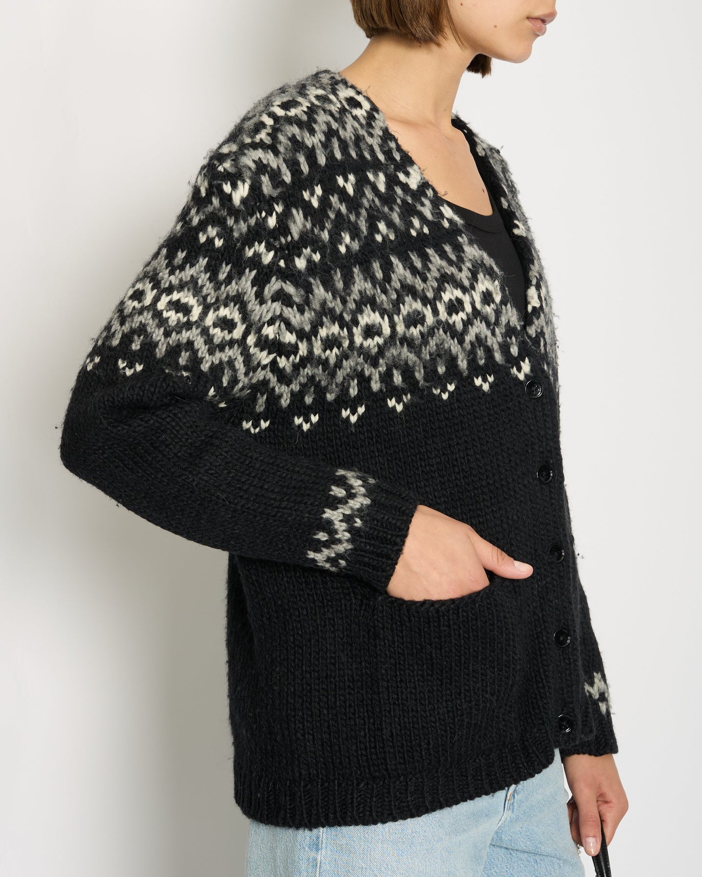 Saint Laurent Black & Grey Knit V-Neck igan Size S (UK 8)