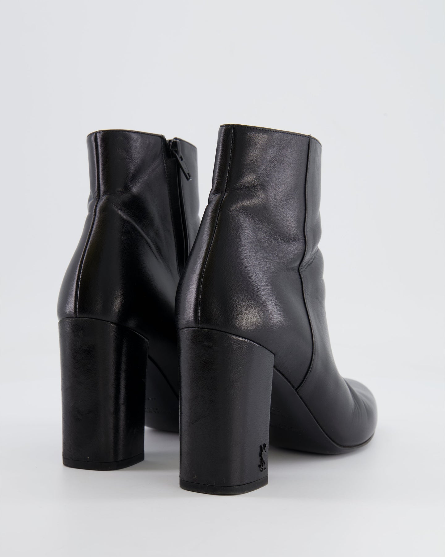 Saint Laurent Black Leather Heeled Boots with Black YSL Logo Detail Size EU 39